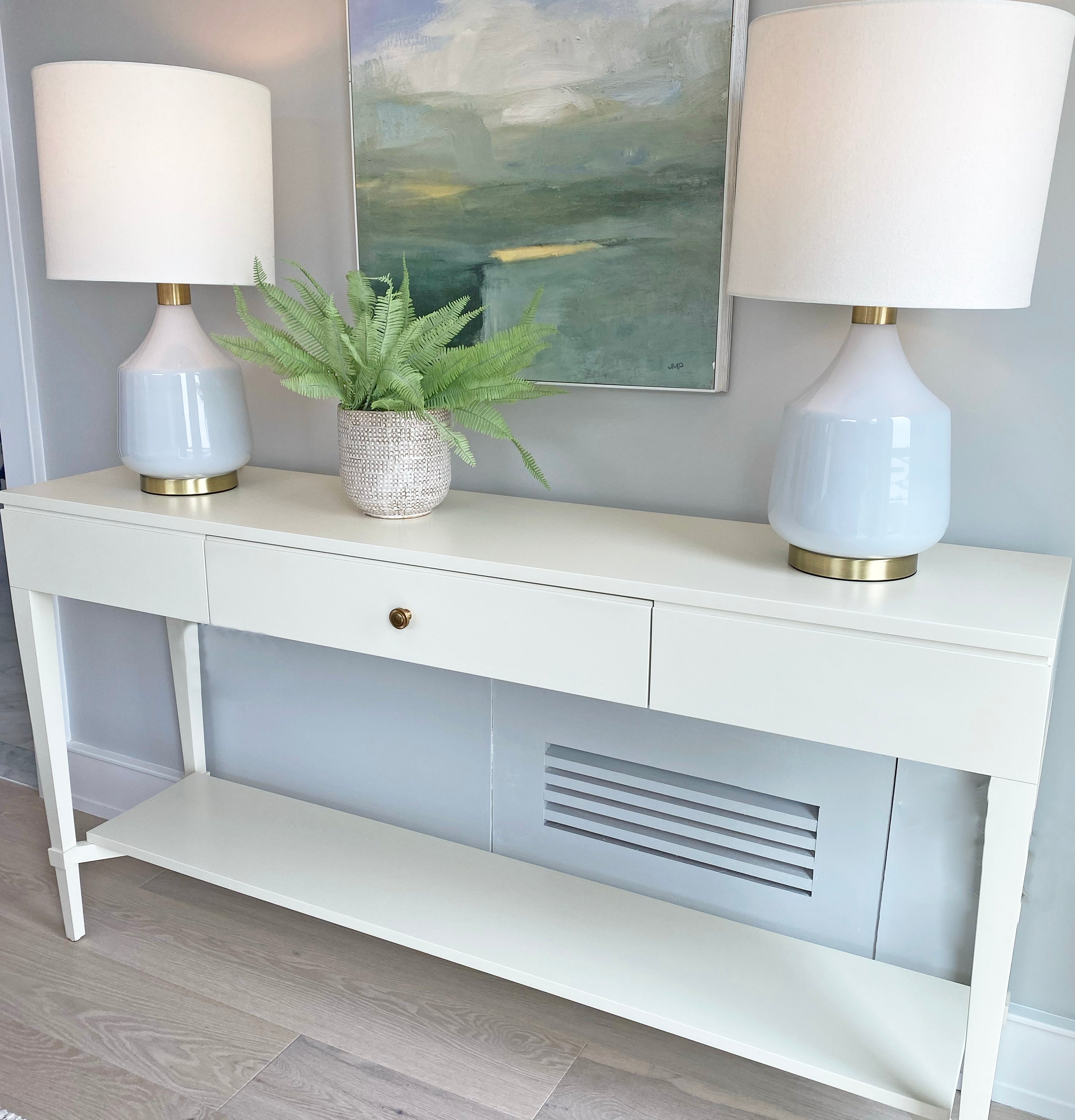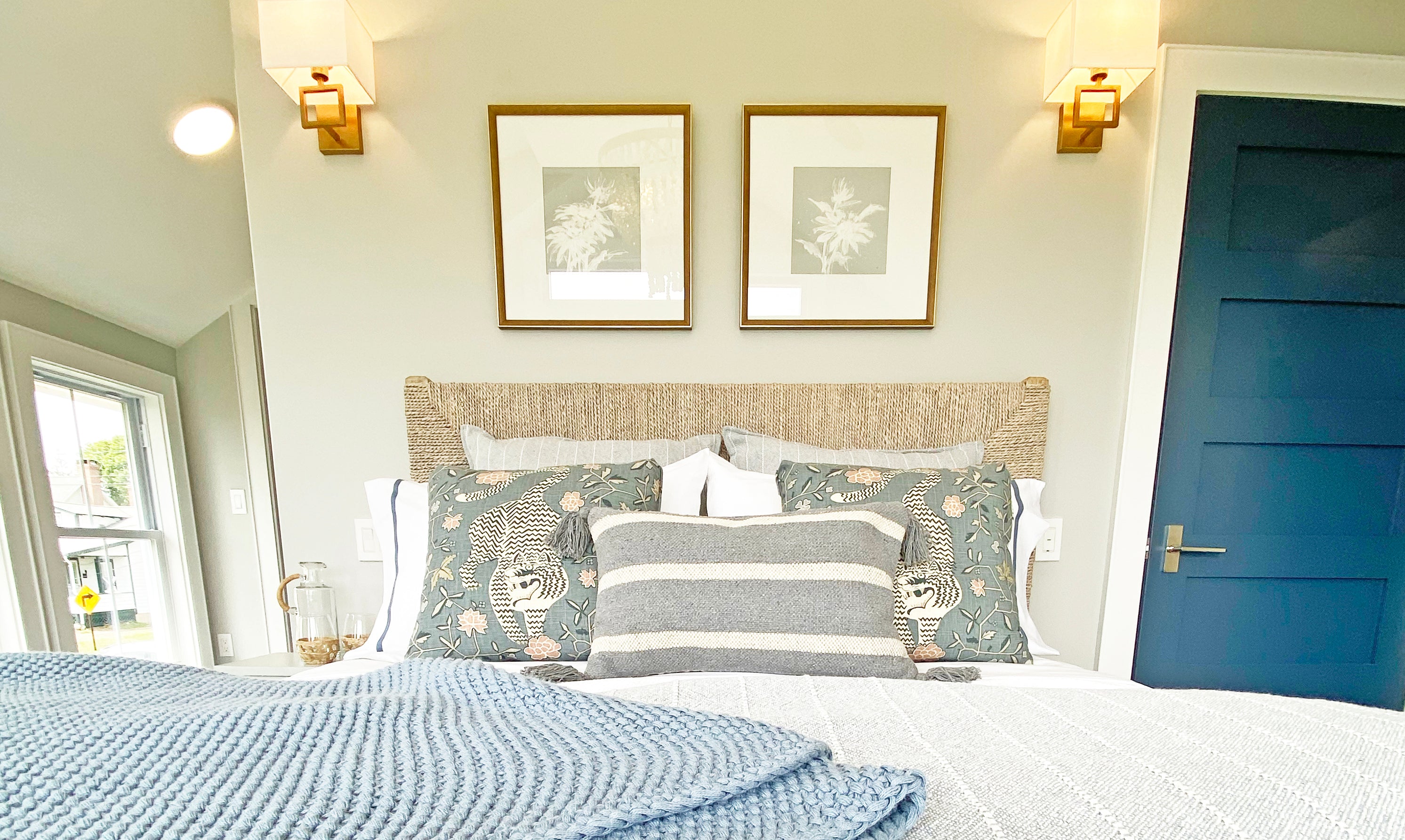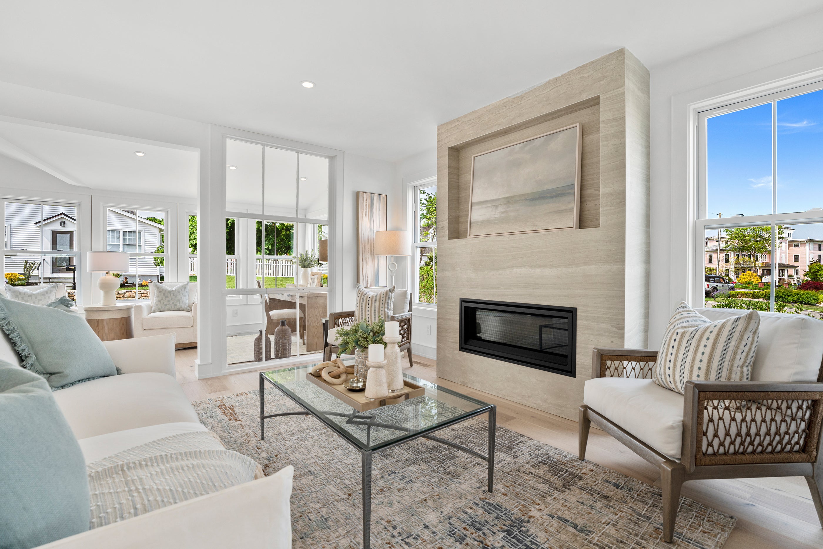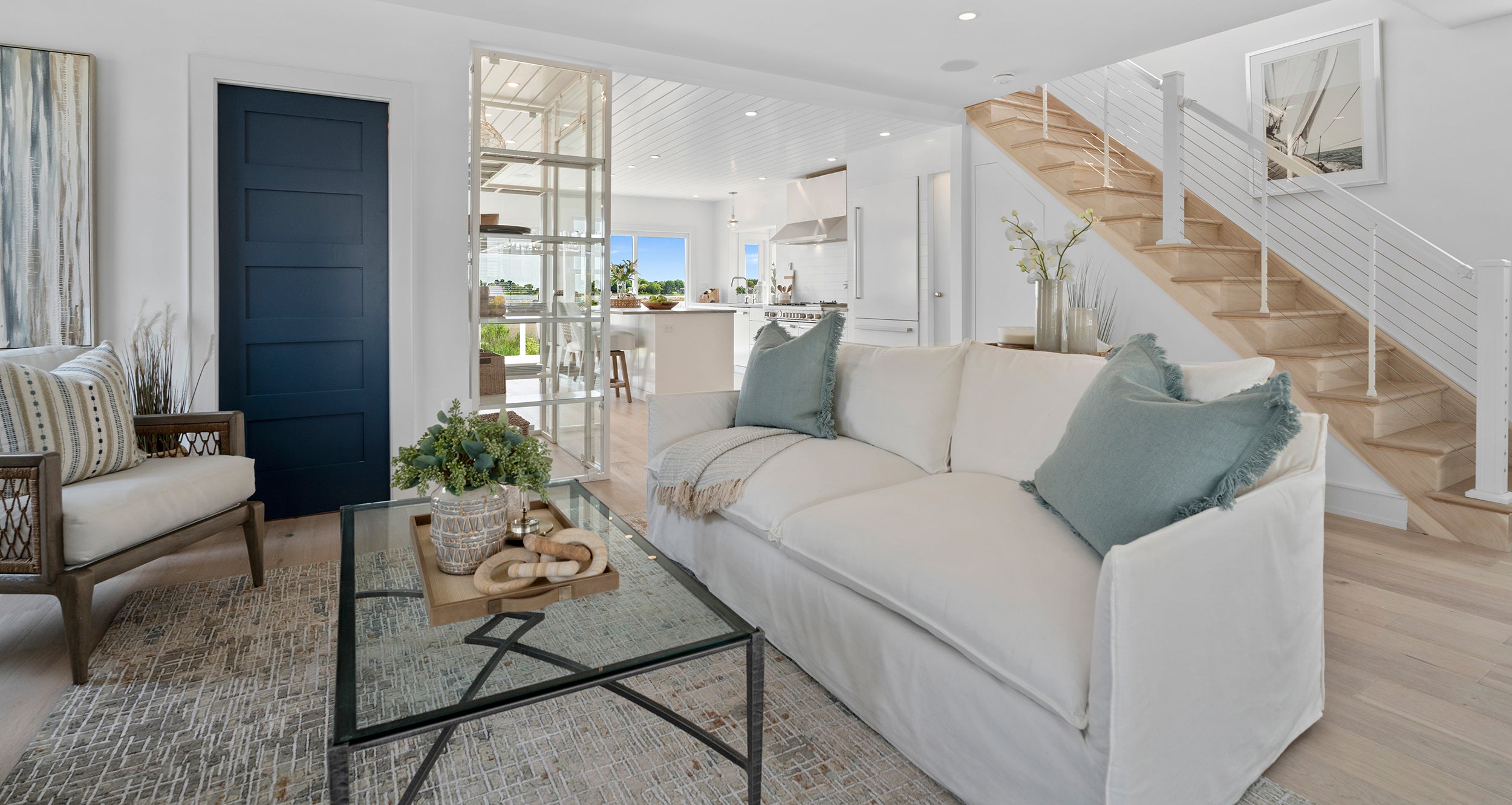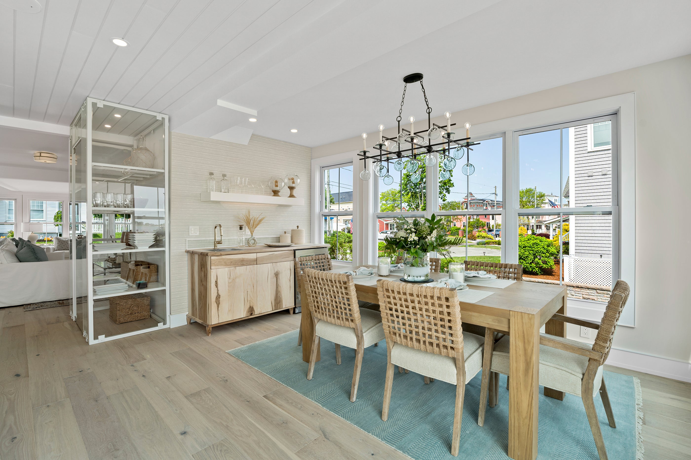 Because of the home's petite footprint, our designers had to get creative with how to use the furniture within each of the spaces. The front sitting room doubles as a home office. Swivel chairs with an understated profile ensure comfort without taking up too much space.