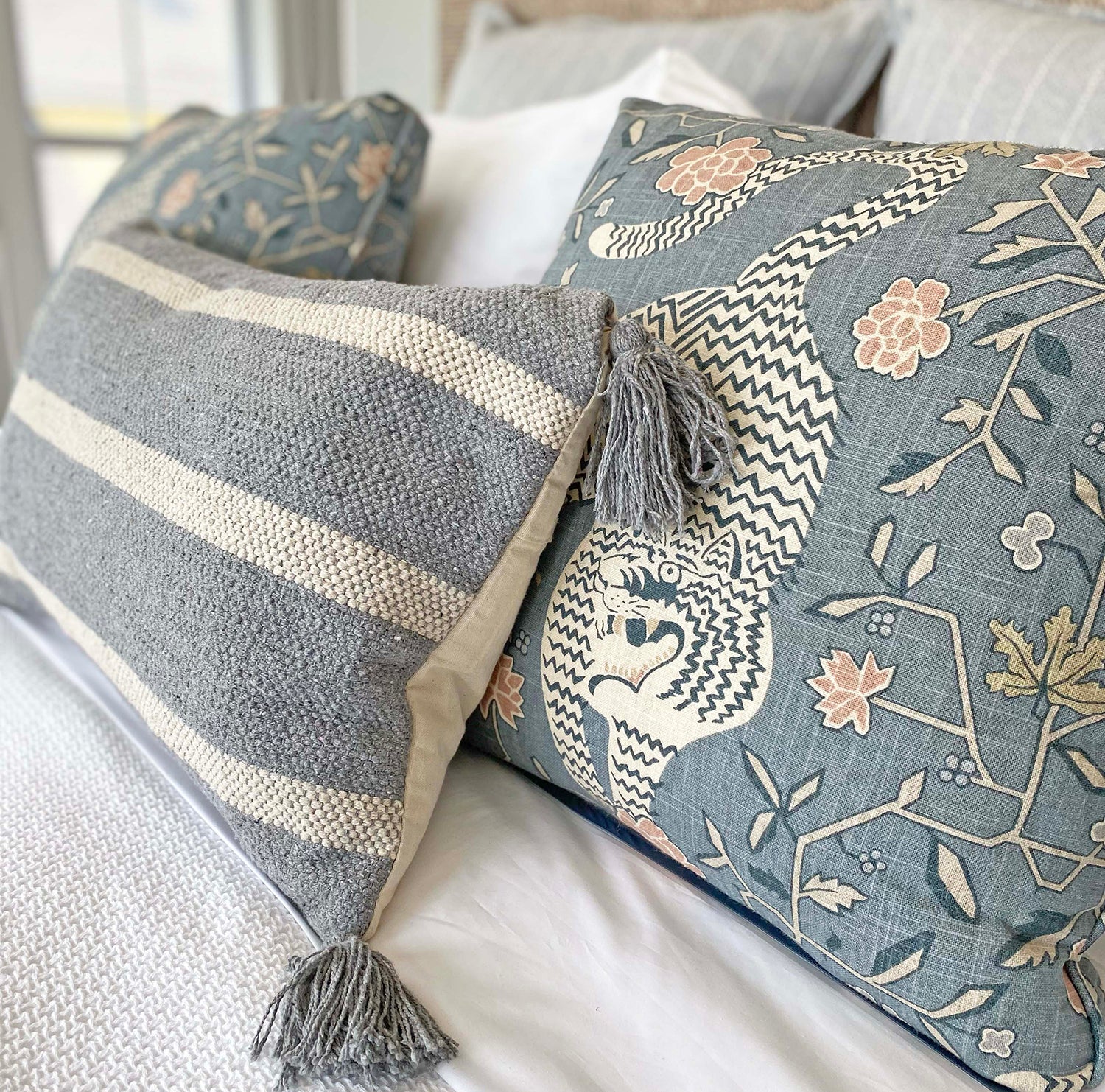 Several rooms in this home benefited from the addition of wallpaper. From the guest powder room, to the wet bar backsplash, to the statement making primary bathroom wall each wallcovering was thoughtfully chosen for its corresponding space.