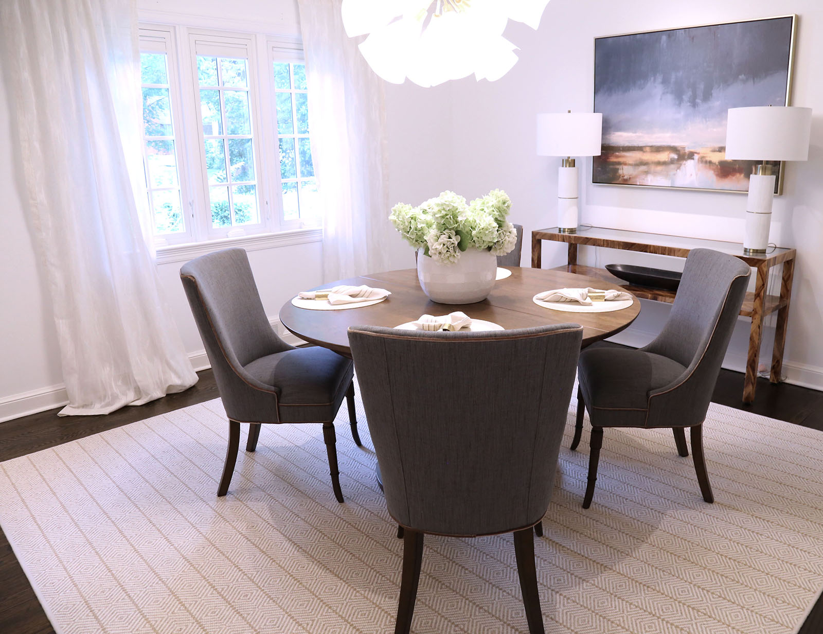 A showstopping light fixture is exactly what this dining room space needed to take it from run-of-the-mill to iconic.