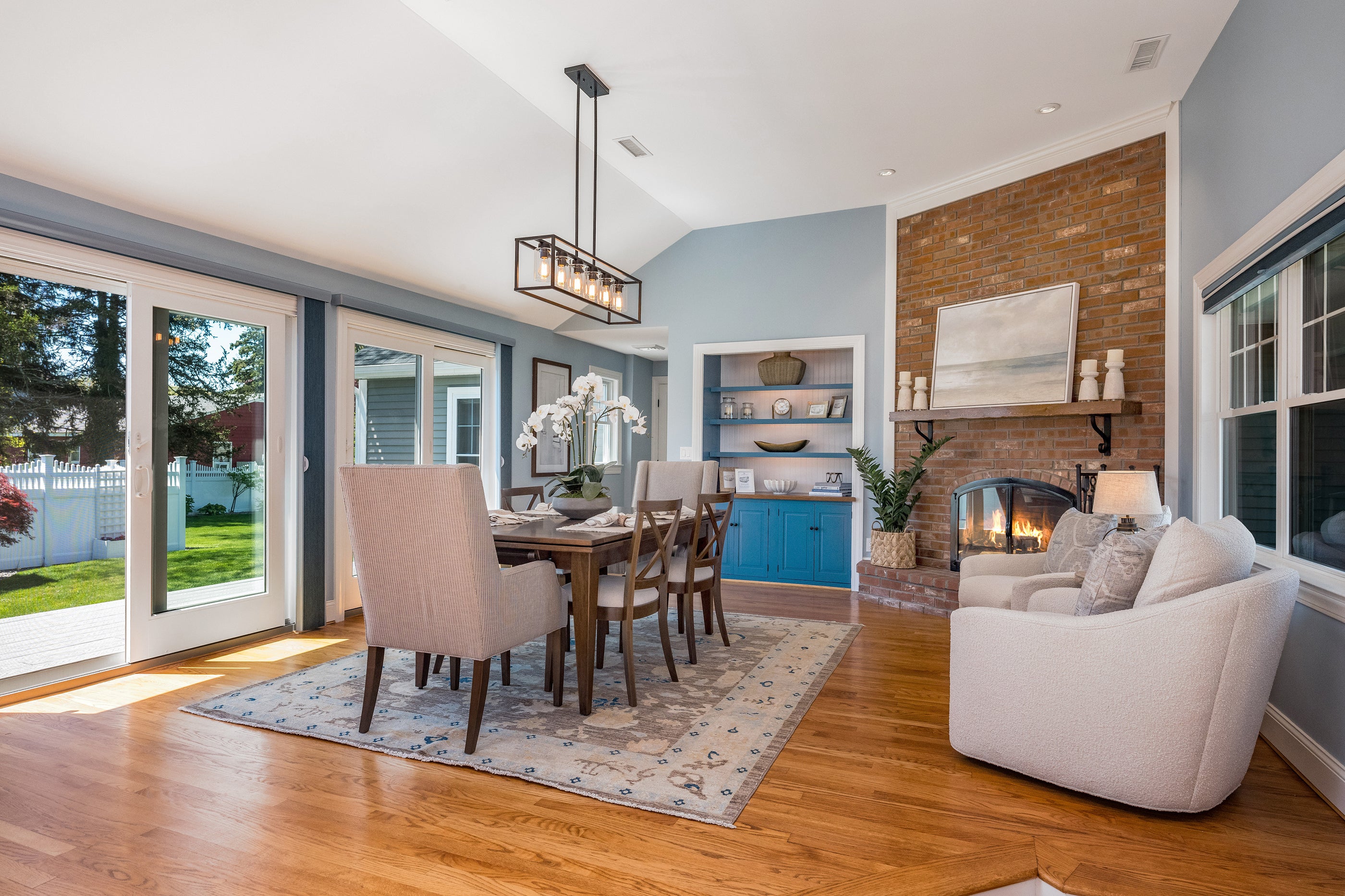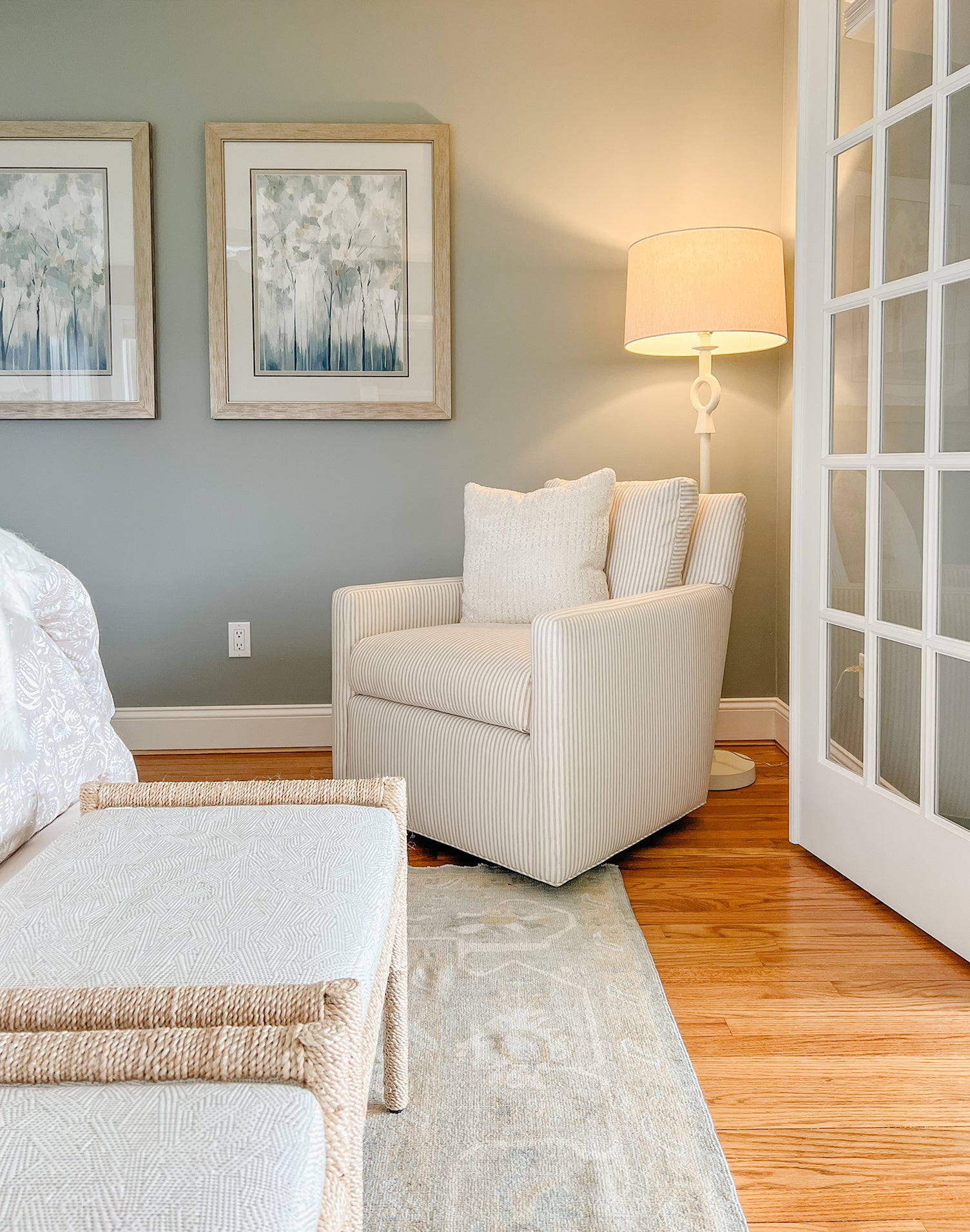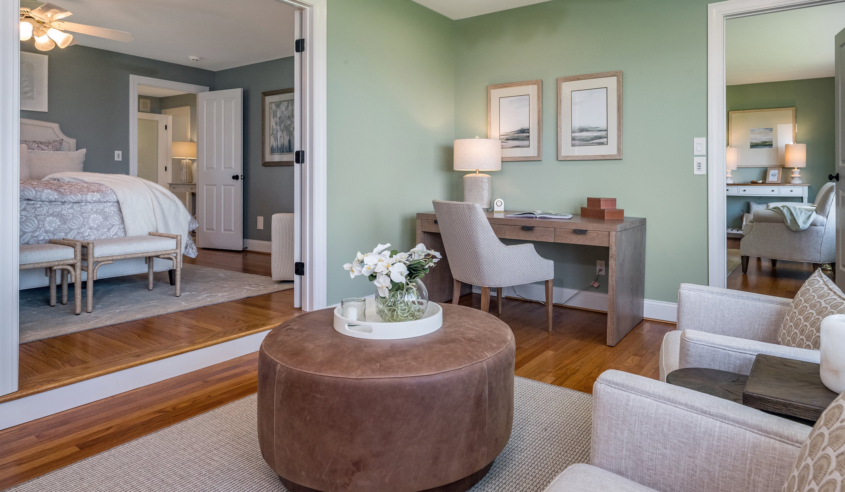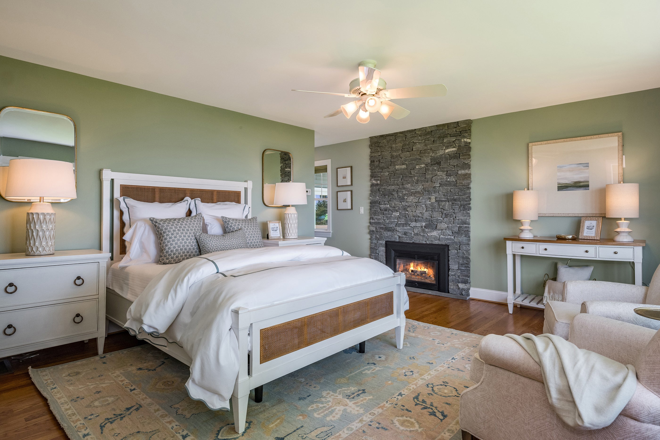 The waterfront home's paint scheme consisted of a lot of blues and greens, so Teresa opted for neutrals in the upholstery and accessories, with hints of color to tie the look together.