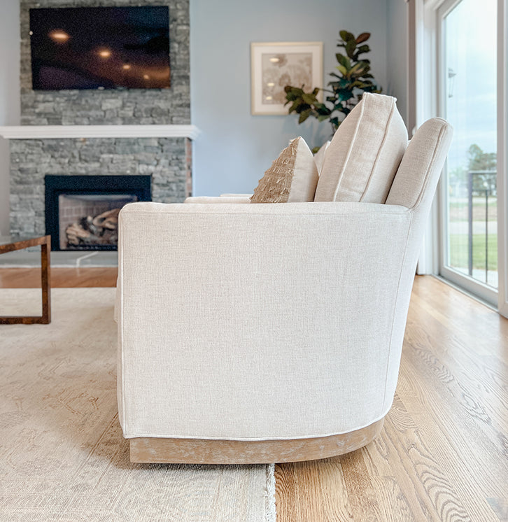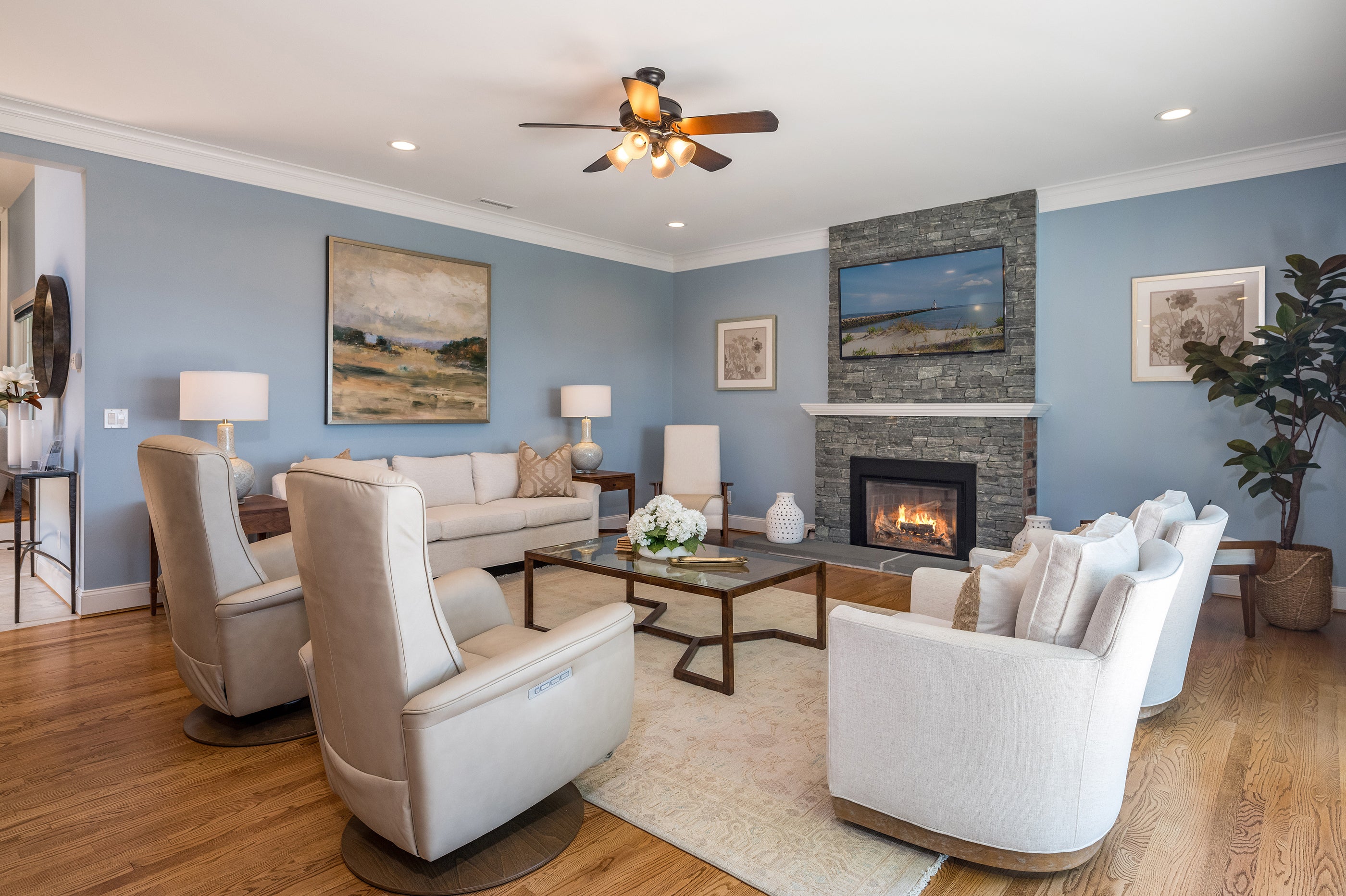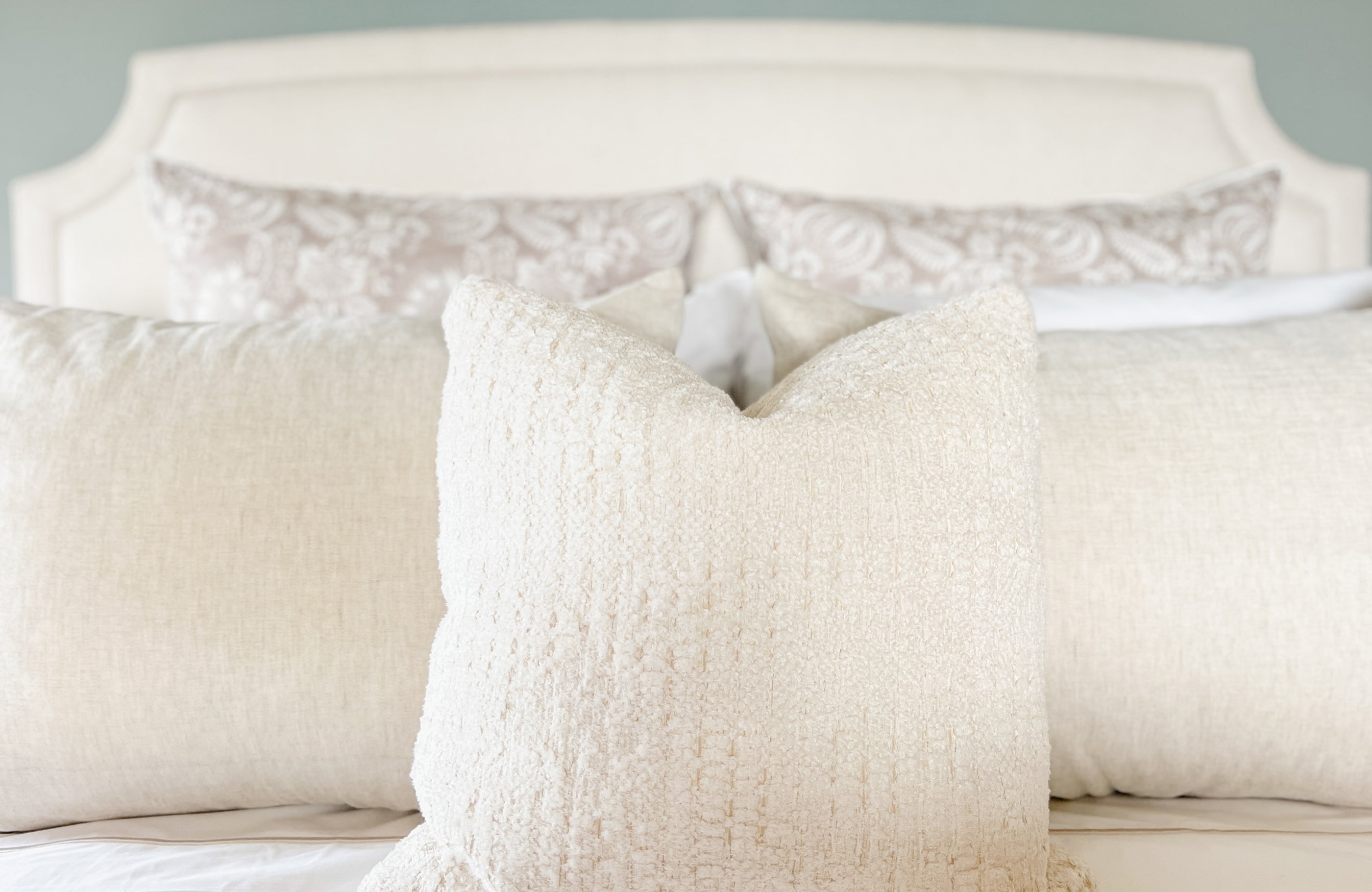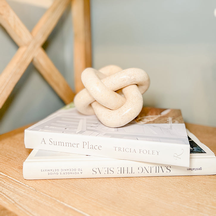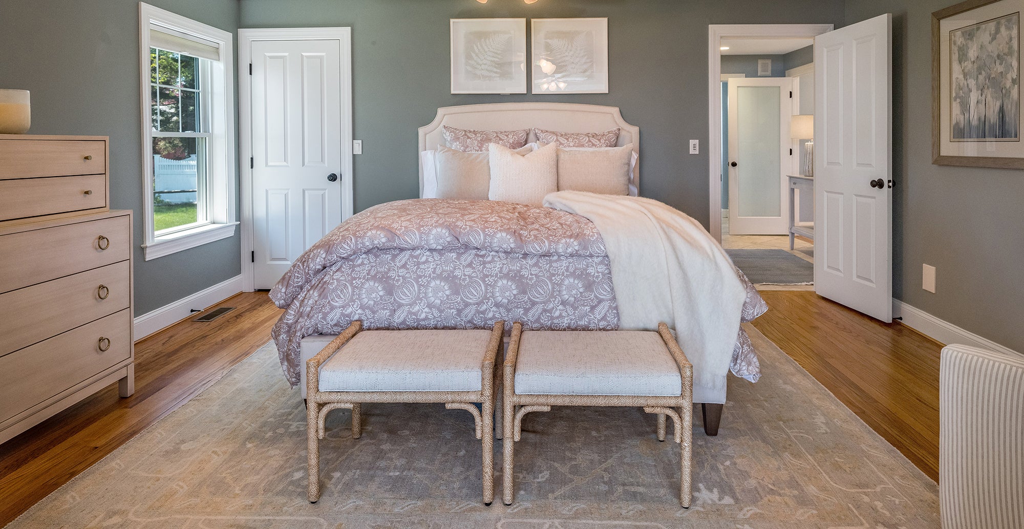 The waterfront home's paint scheme consisted of a lot of blues and greens, so Teresa opted for neutrals in the upholstery and accessories, with hints of color to tie the look together.
