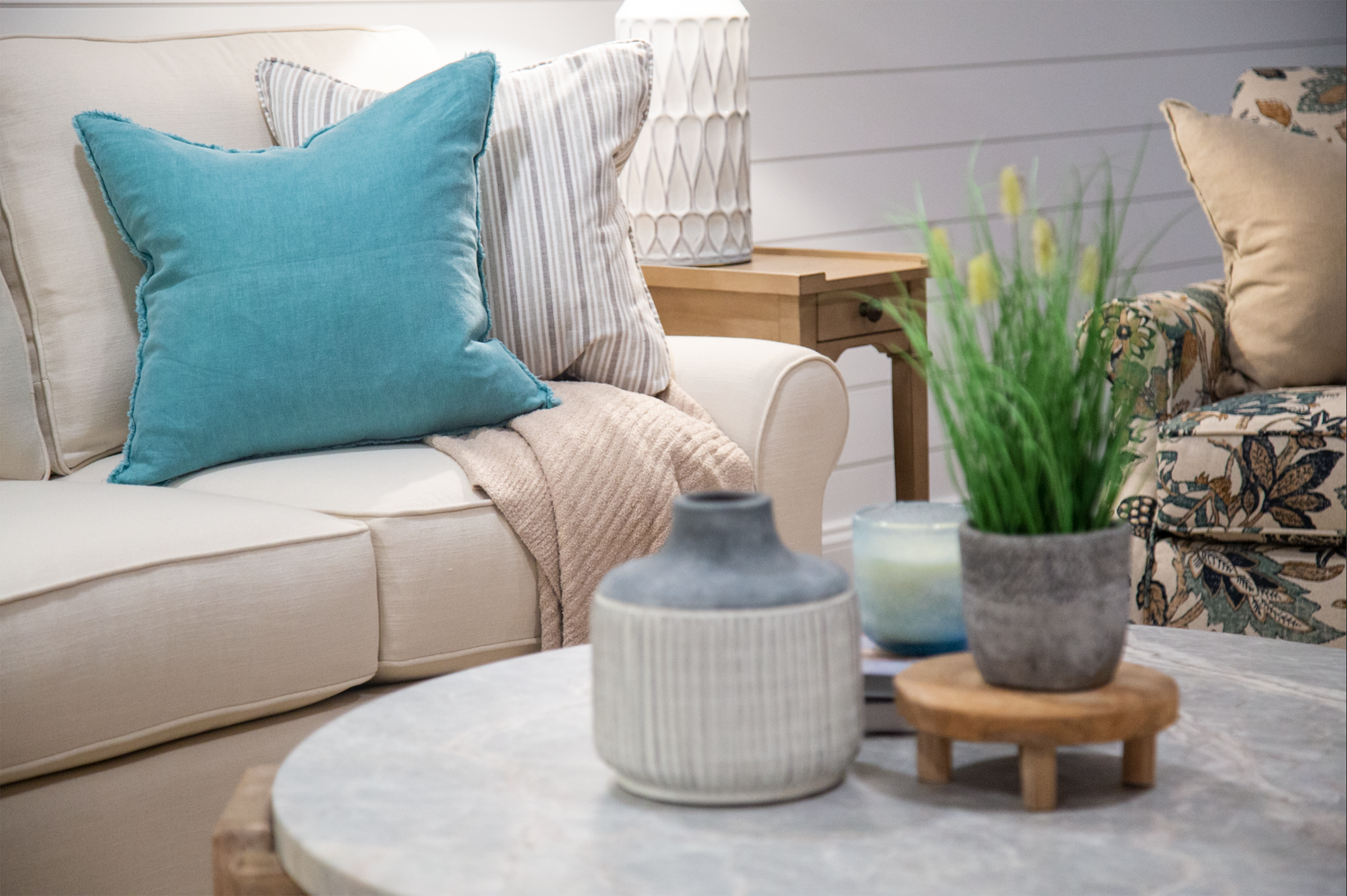 Inspiration for each room started with the bed frame. Despite featuring different materials and textures, they all stay true to the coastal vibe of the home. The bedding was key in giving each bedroom a unique voice and feel.