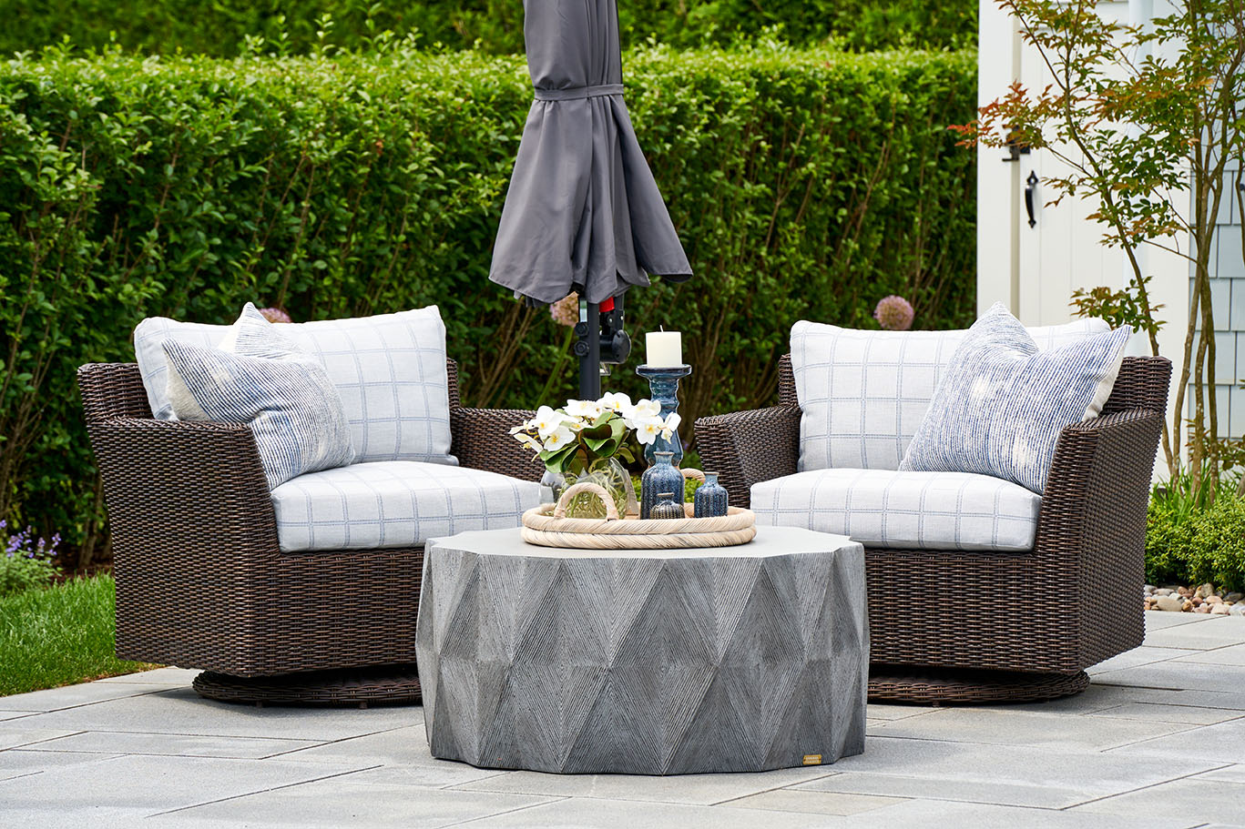 Jackie was given an exceptionally large patio footprint to work with. Her ability to carve out functional spaces using furniture truly transformed the space.
