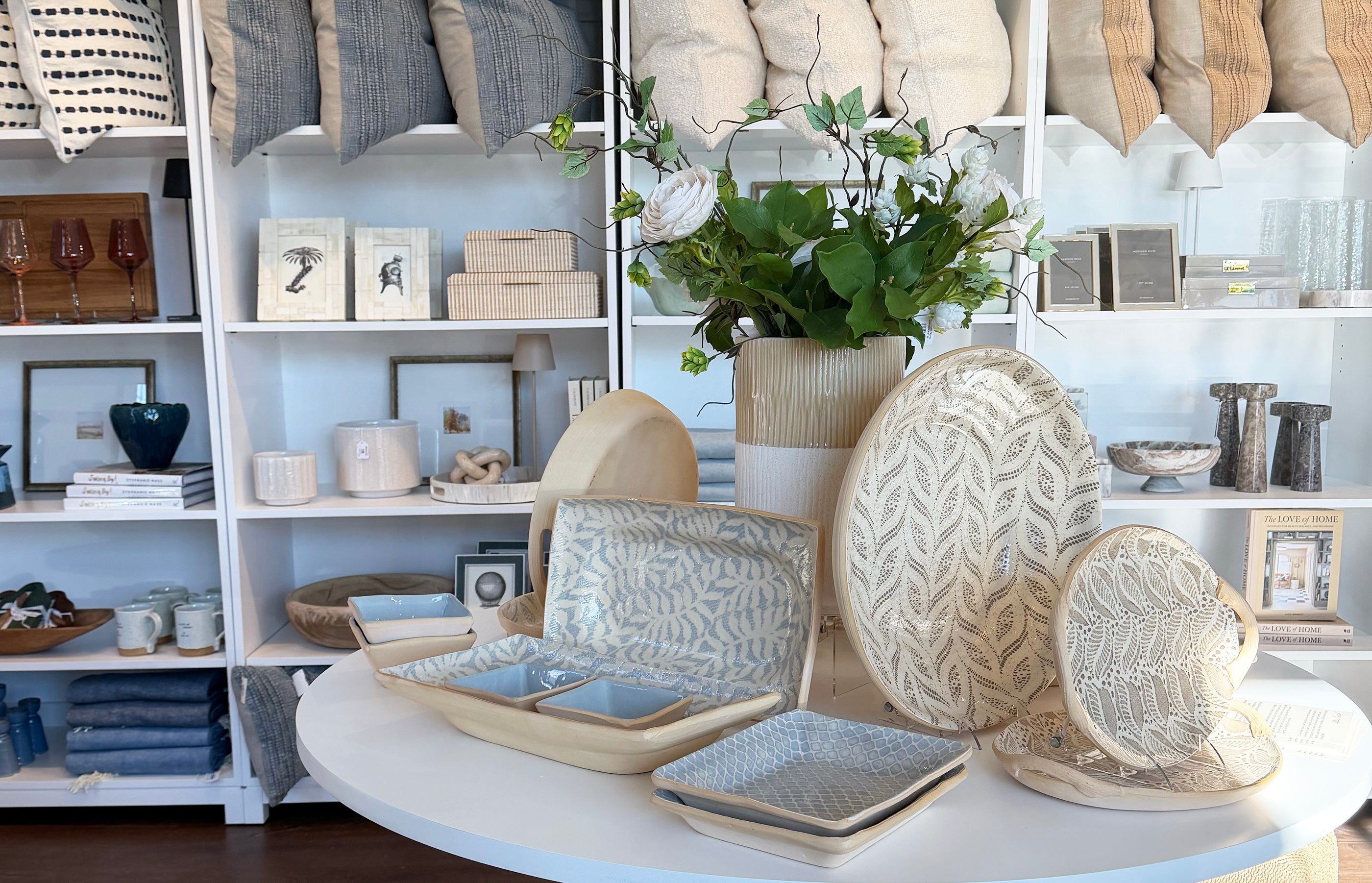 Everyday essentials as well as items for hosting that elevate any gathering to a special occasion. Shop placemats, dishes, glassware, boards, servingware and more in each of our three showrooms!