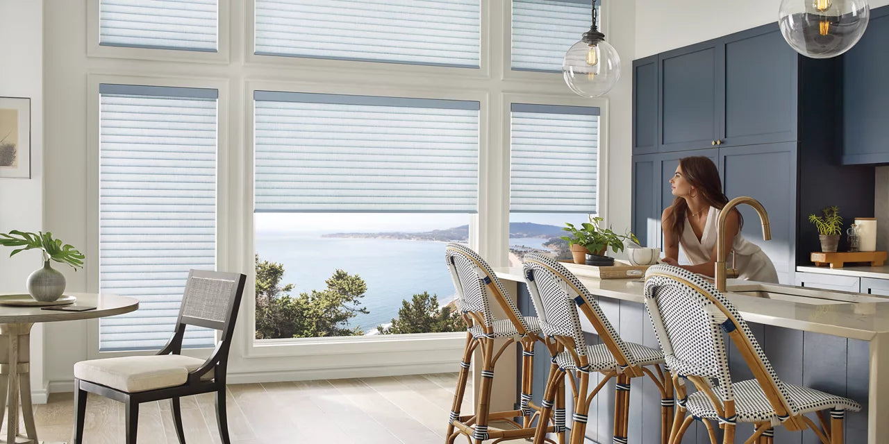 The soft folds of a Roman shade paired with an energy-efficient cellular design.