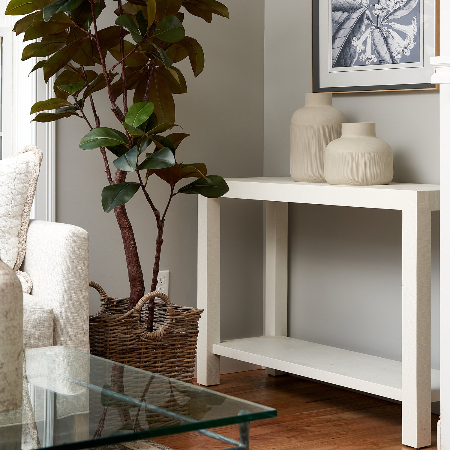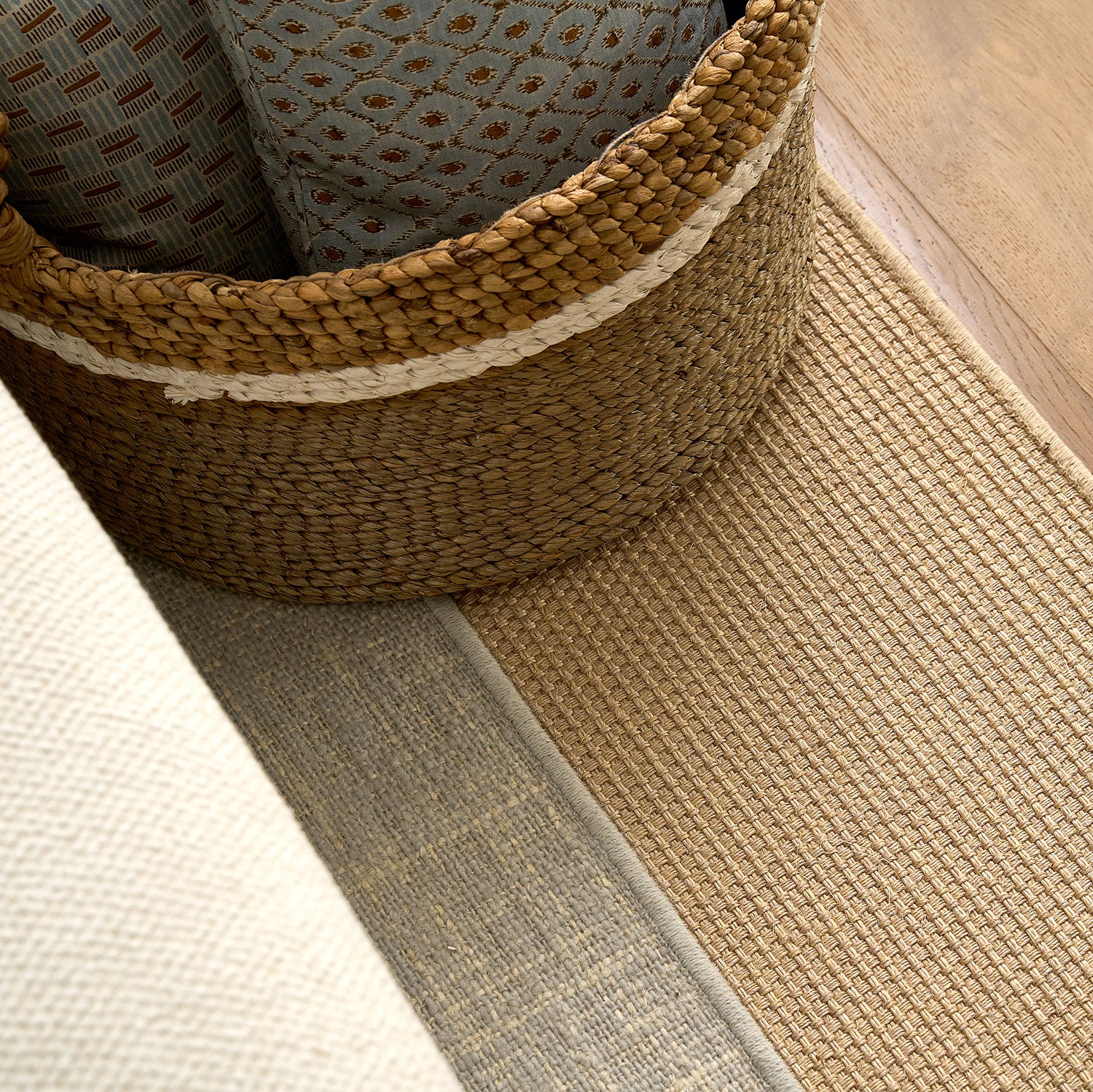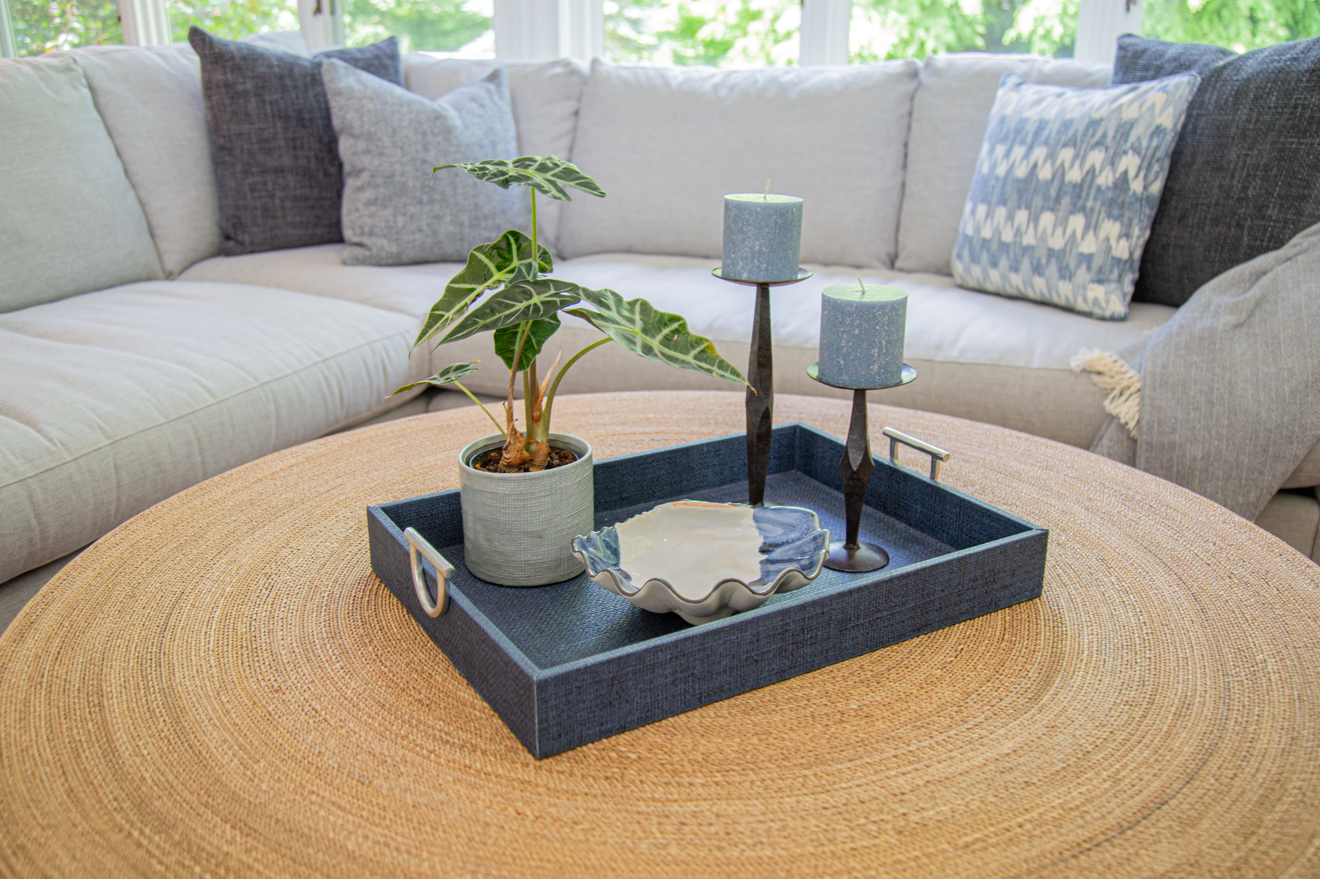Powder coated metal frame hand-wrapped with finely woven natural seagrass rope, 48"d x 18.25"h