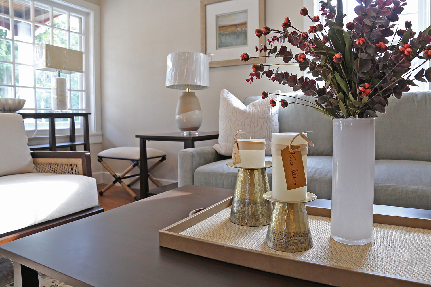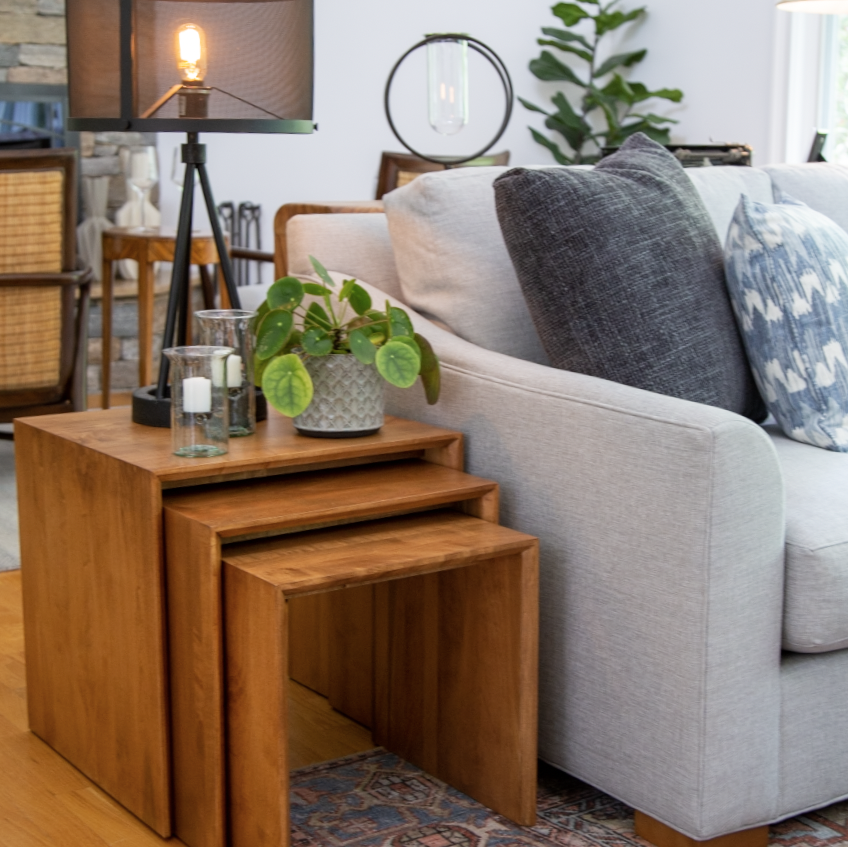 Marble and Walnut Grained Veneer Top with Brushed Brass base, nested tables, options available