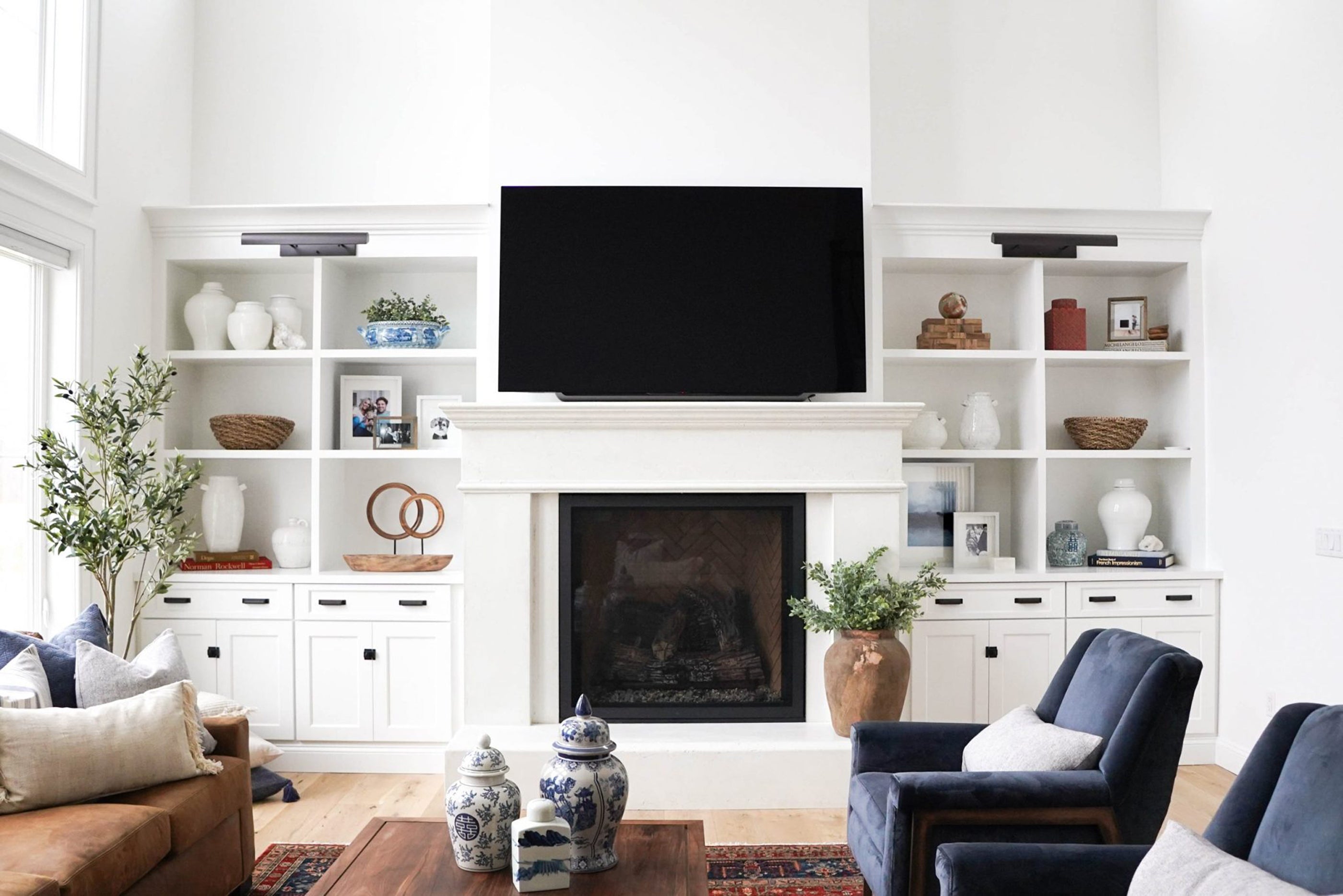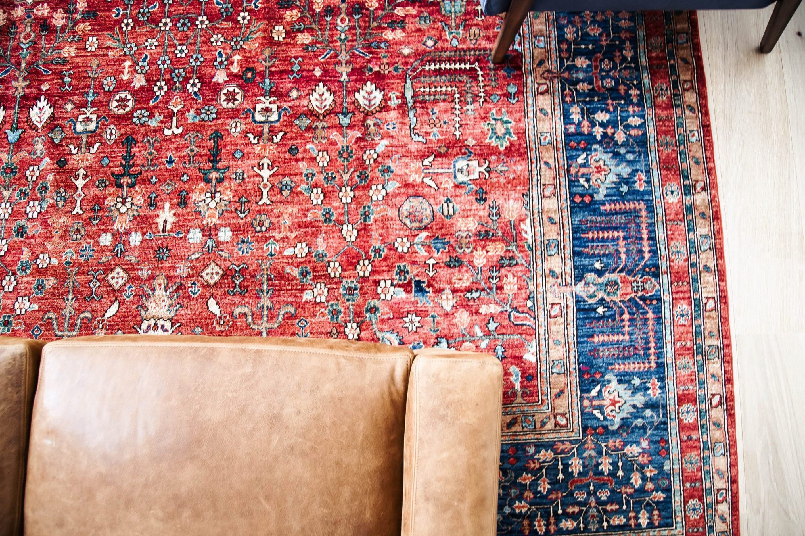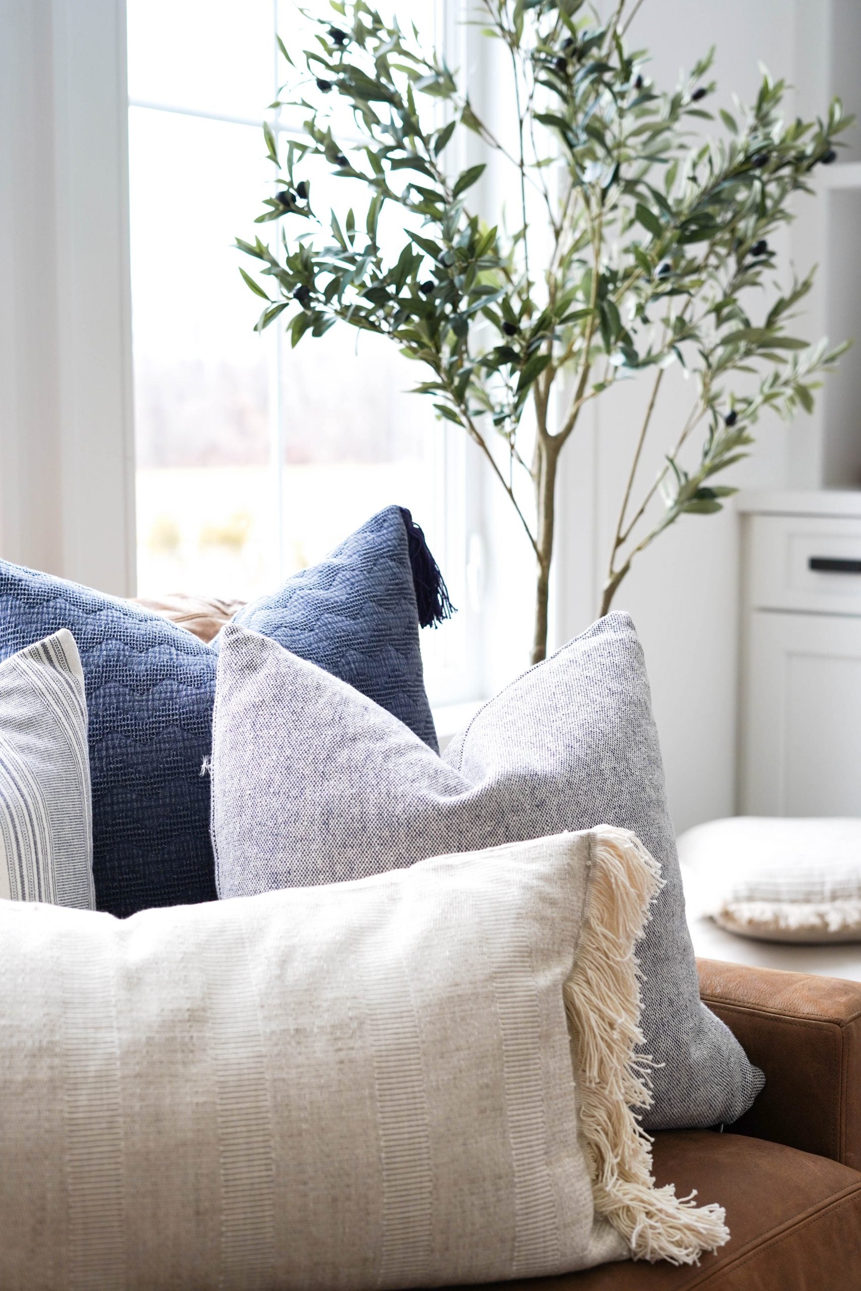 This great room design may have started with a large hand knotted rug and beautiful leather sectional, but it ended with all the perfect finishing touches with accessories in the client's color story.