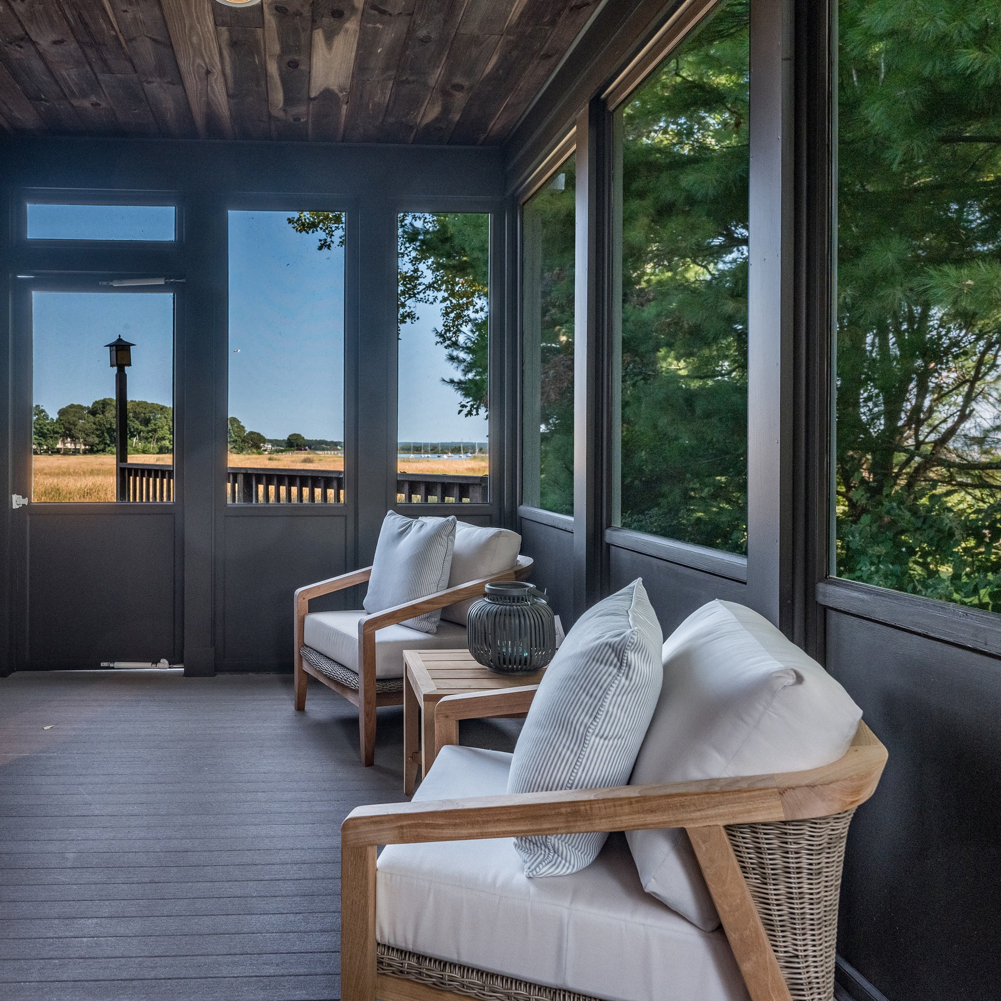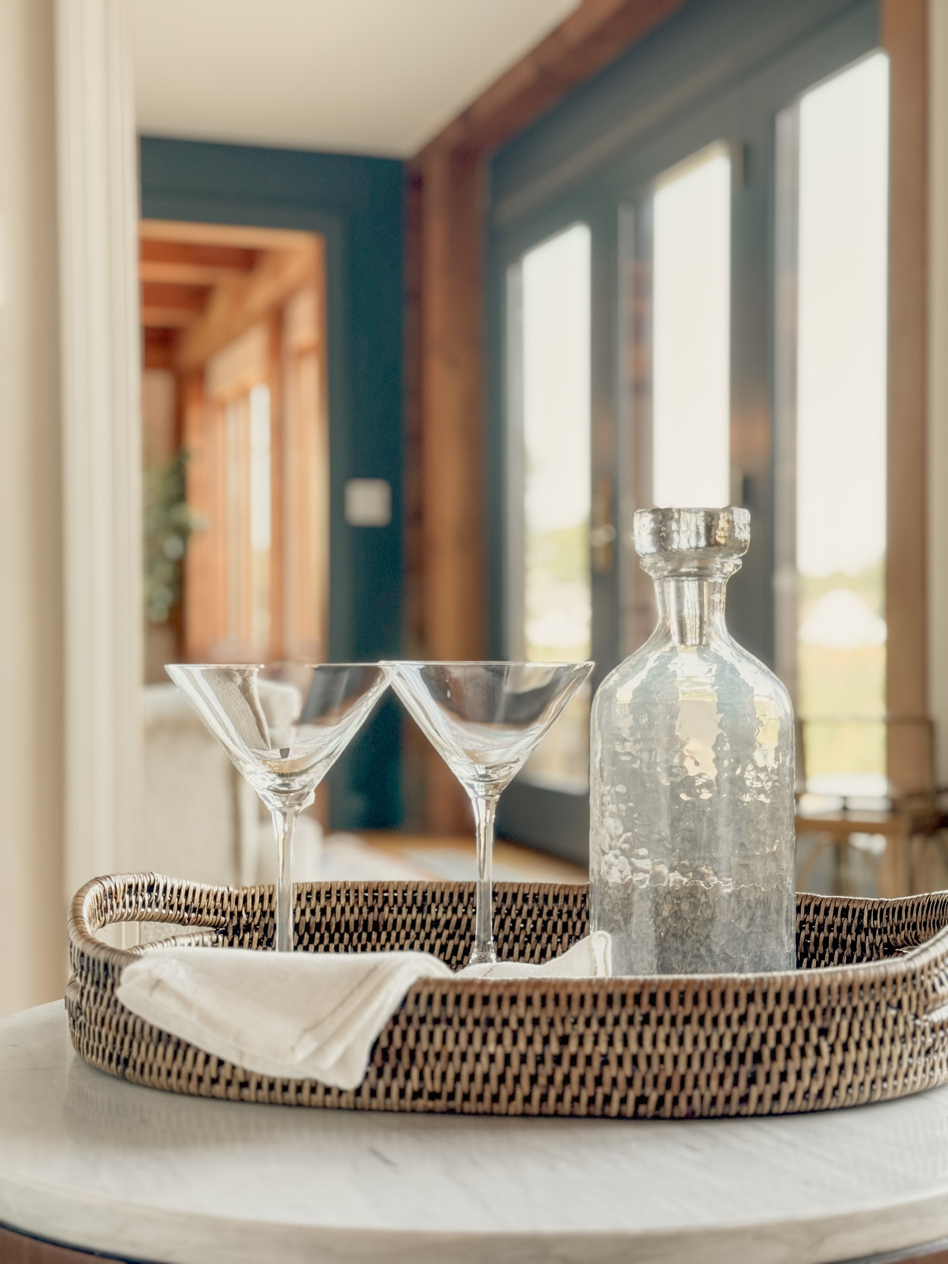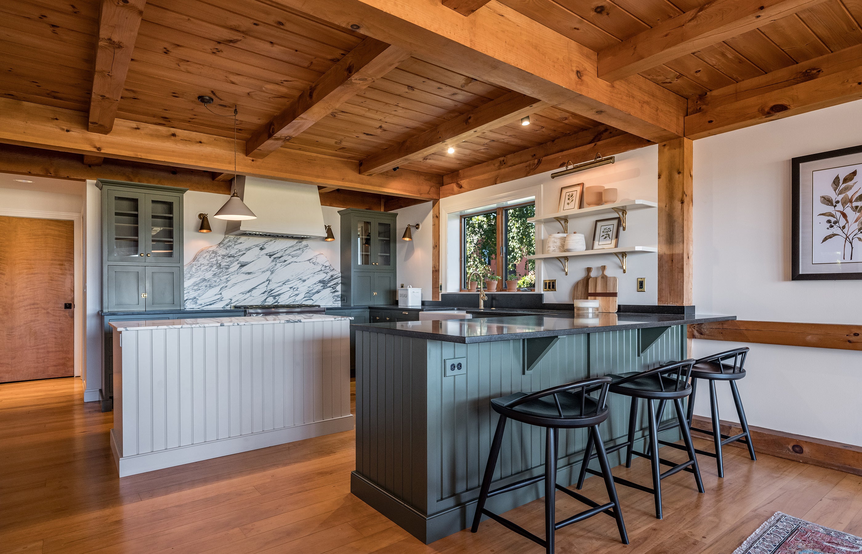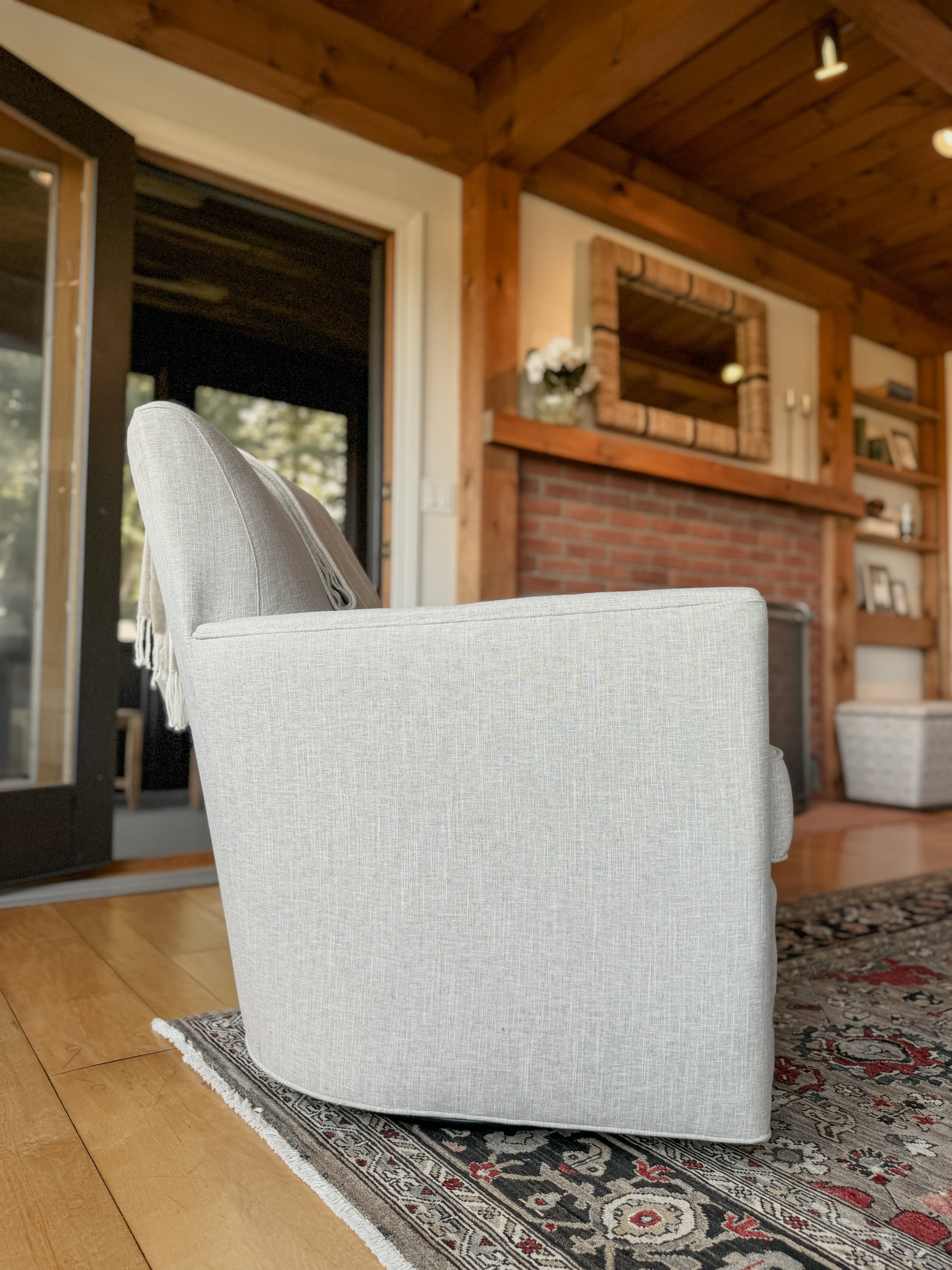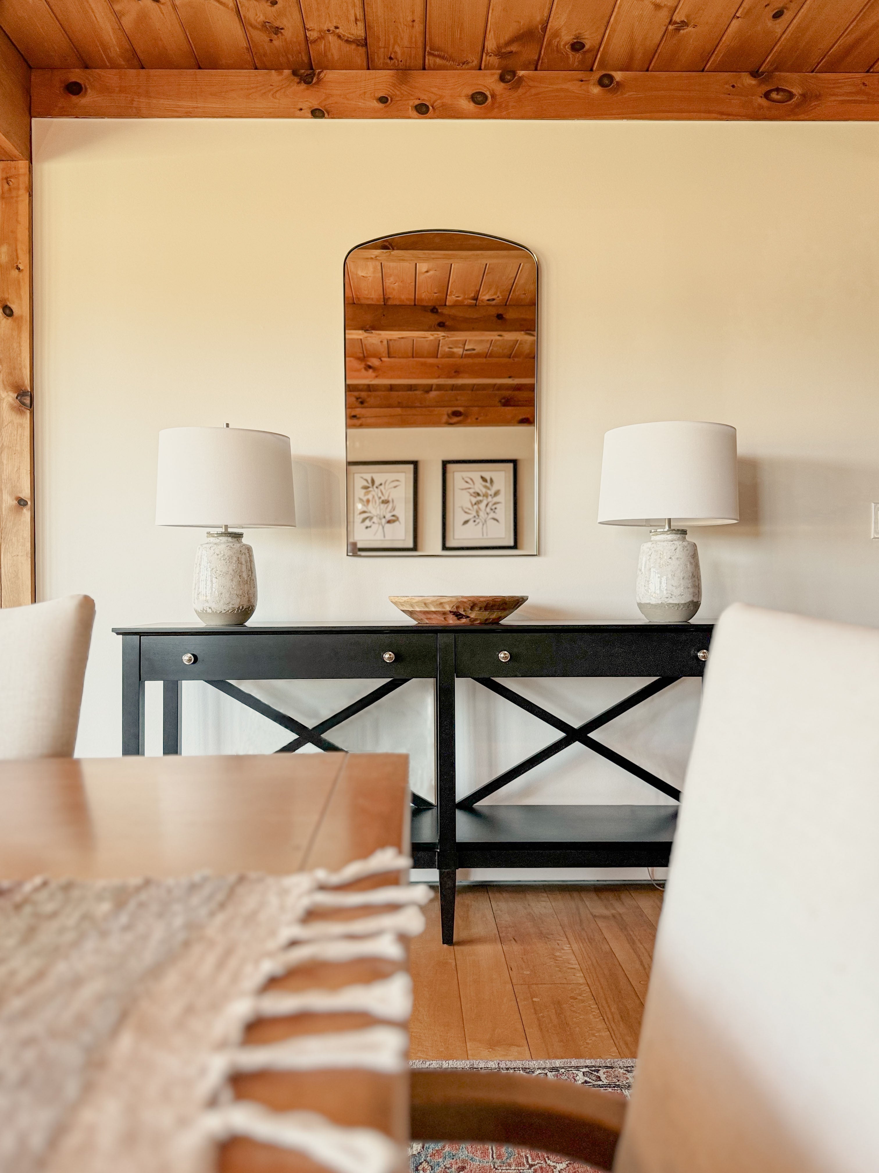 The home's timber framing and color palette inspired the direction our design team went in when selecting rugs, upholstery and case pieces. Layering in textural elements enhanced the overall look of the home and created cohesion.