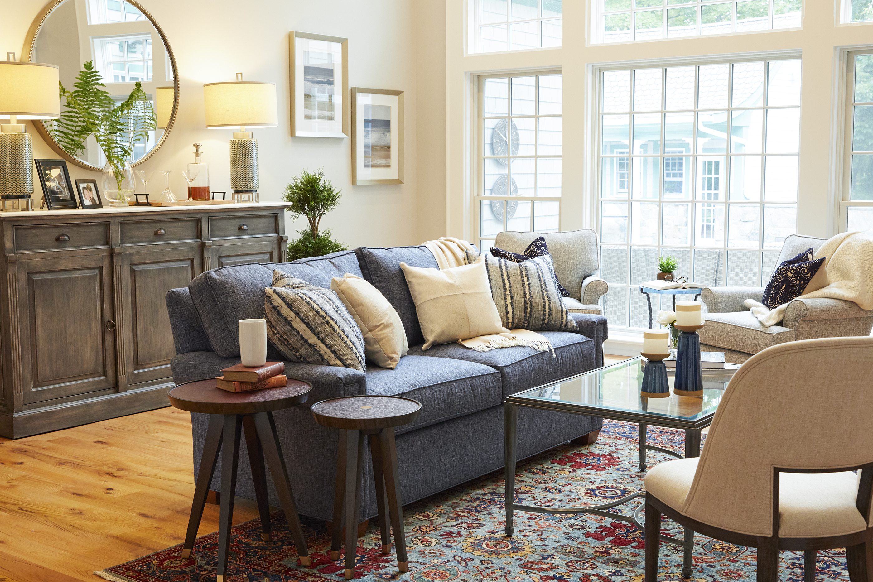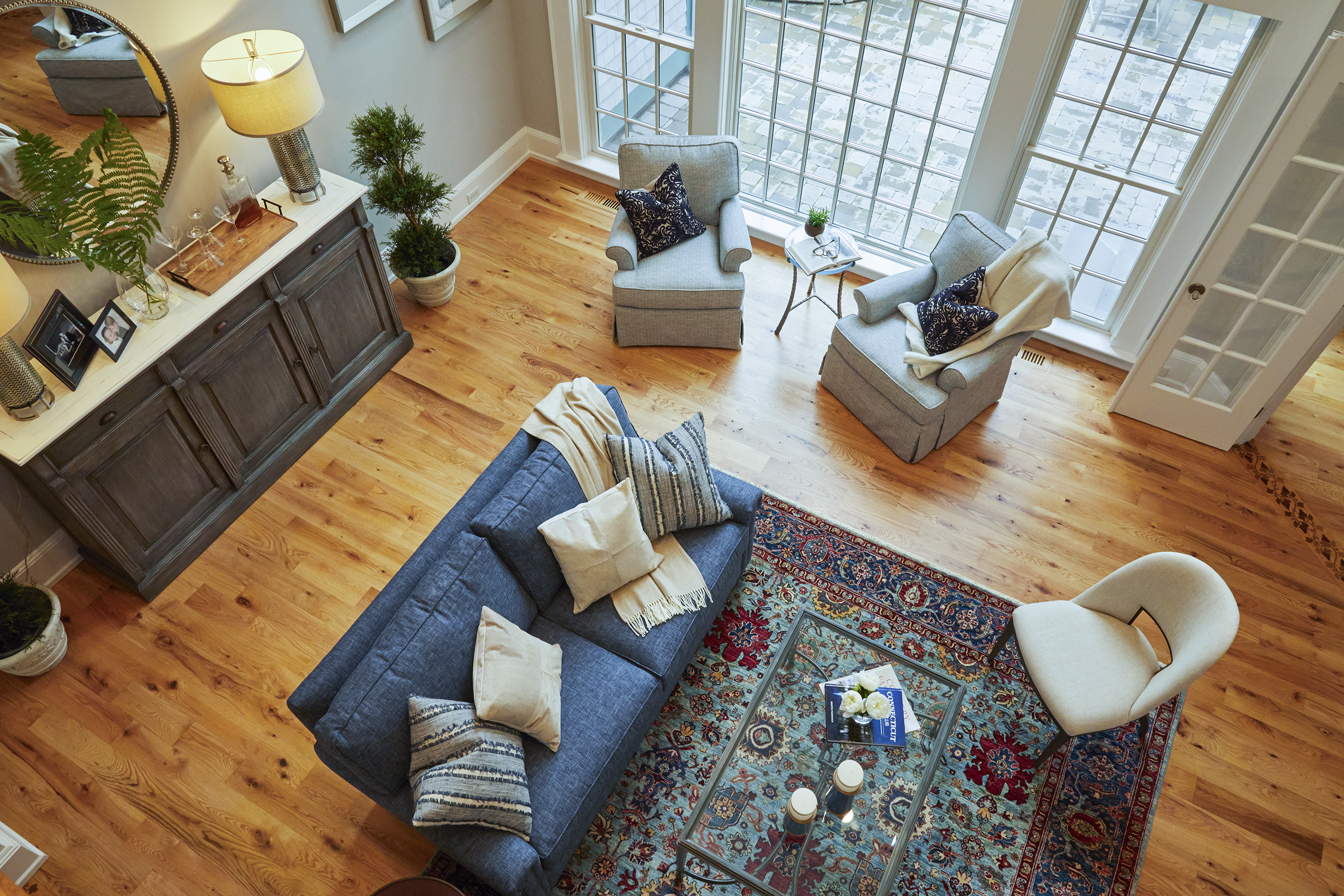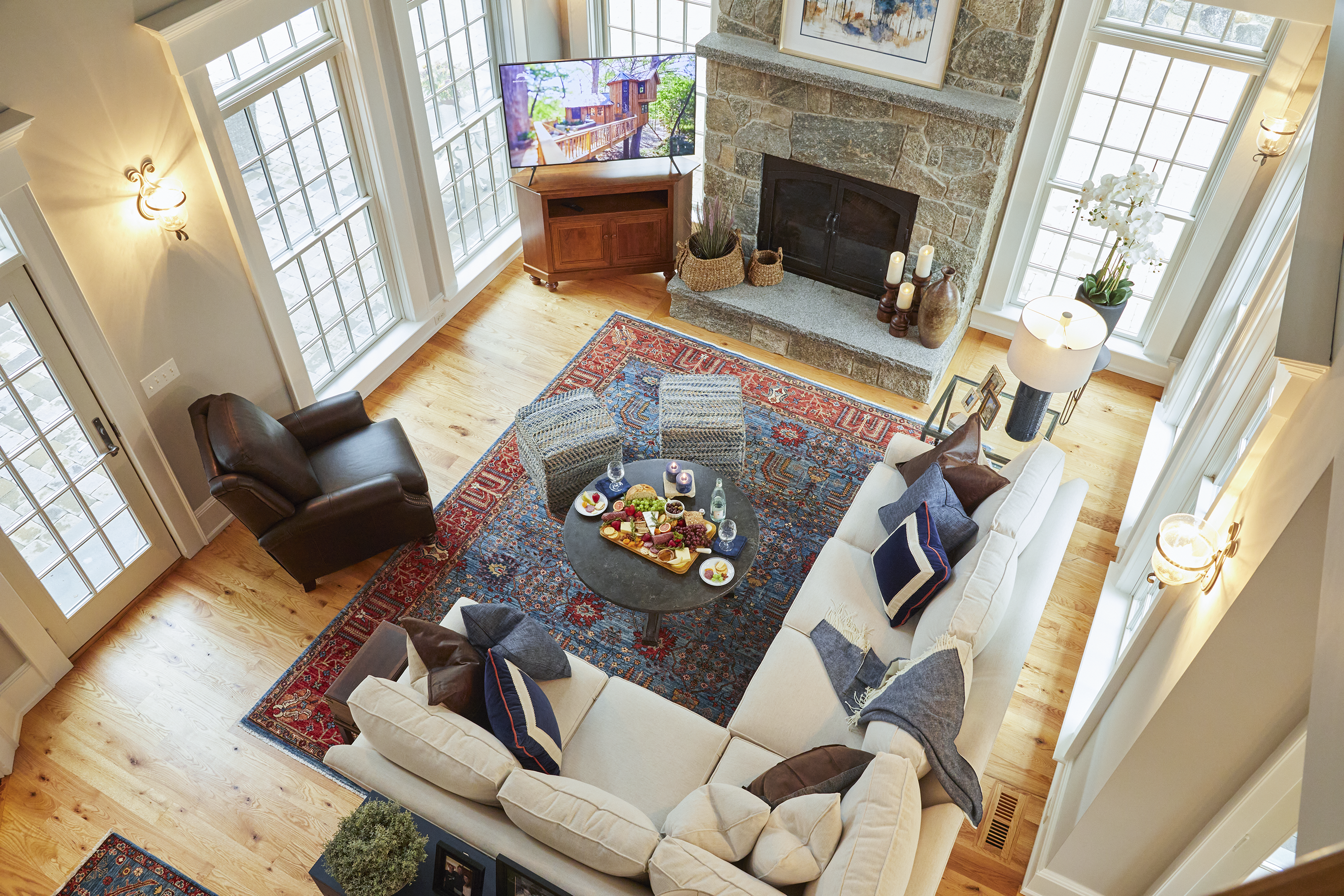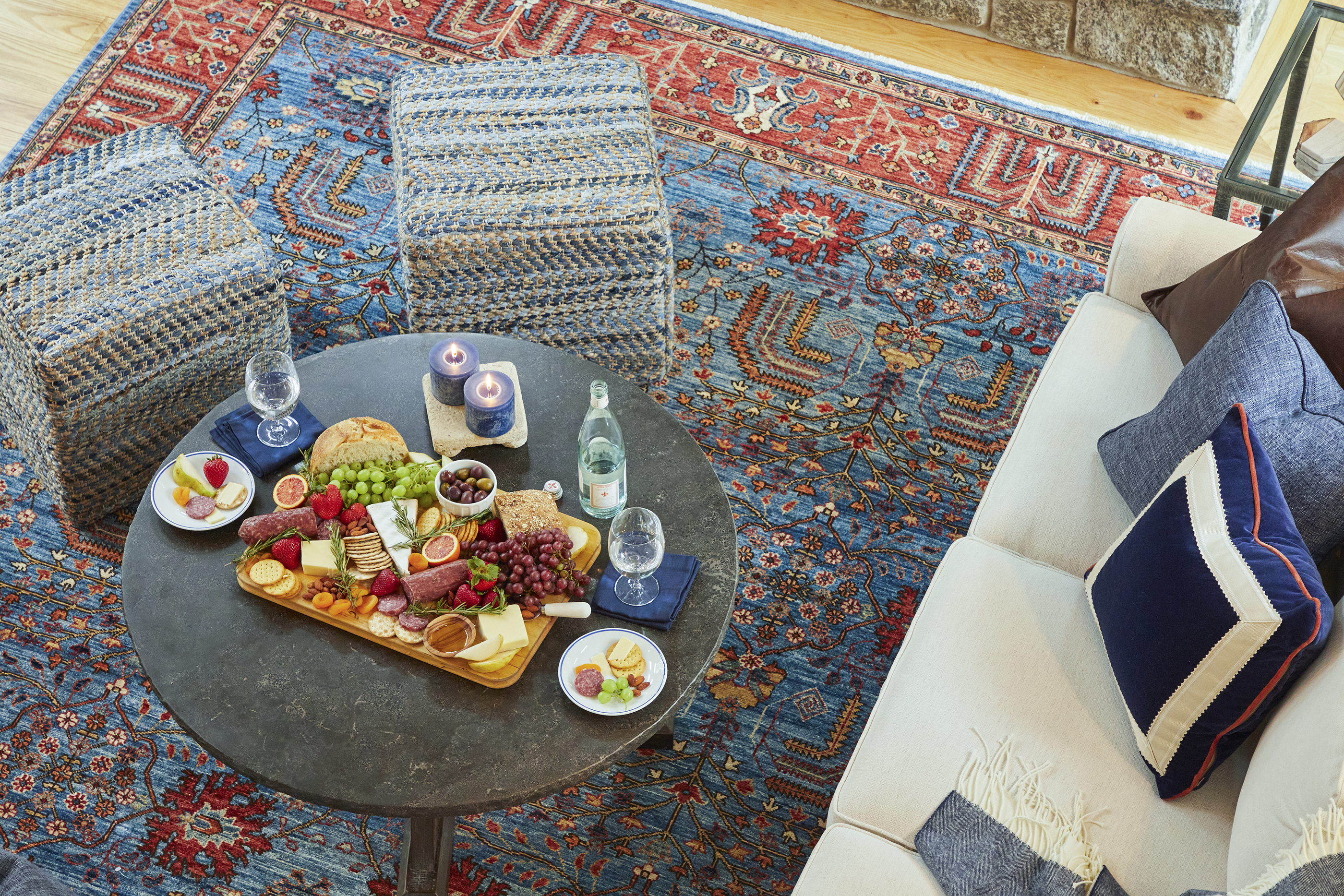 The clients loved the bold colors of our Serapi handknotted rugs. In rooms with vaulted ceilings and lots of natural light, they add the perfect amount of drama without being overpowering.