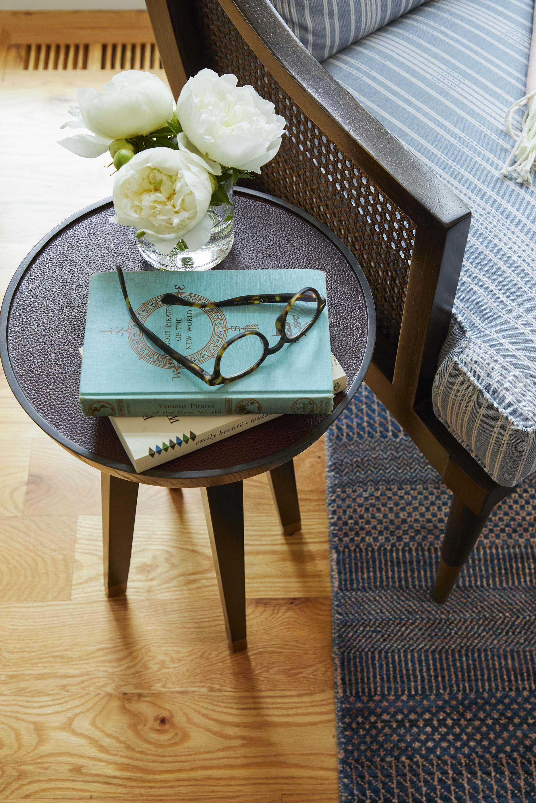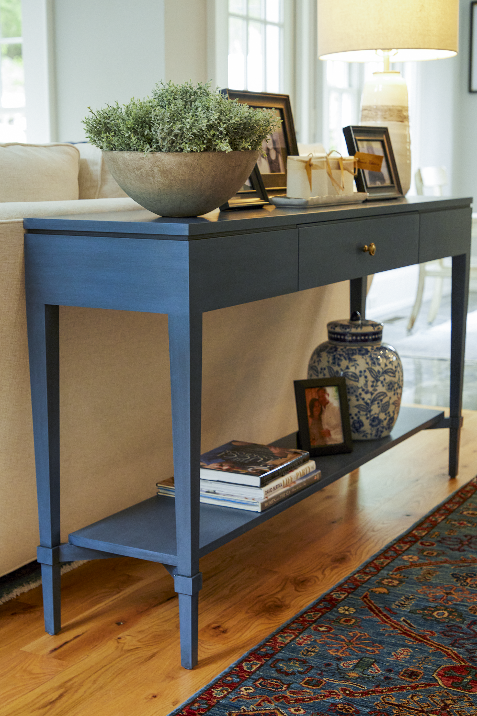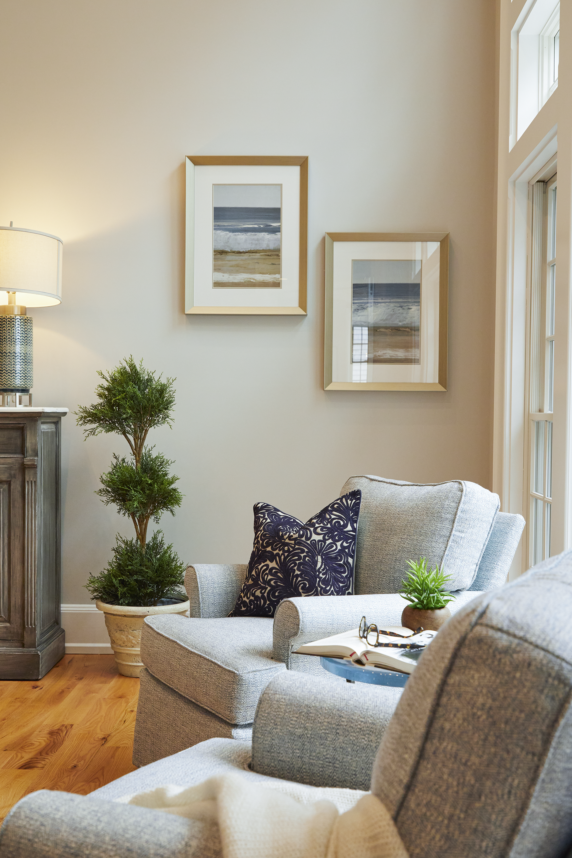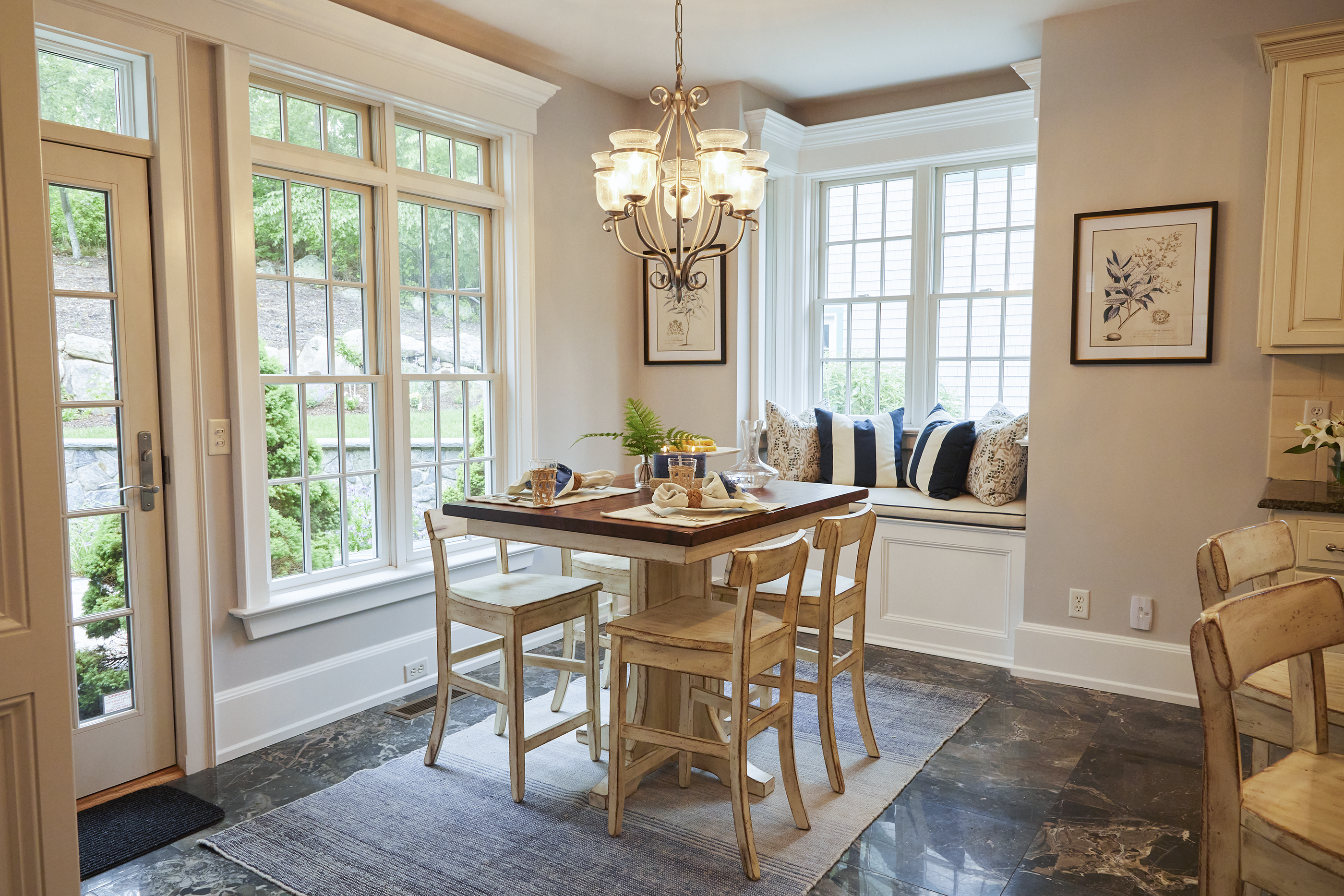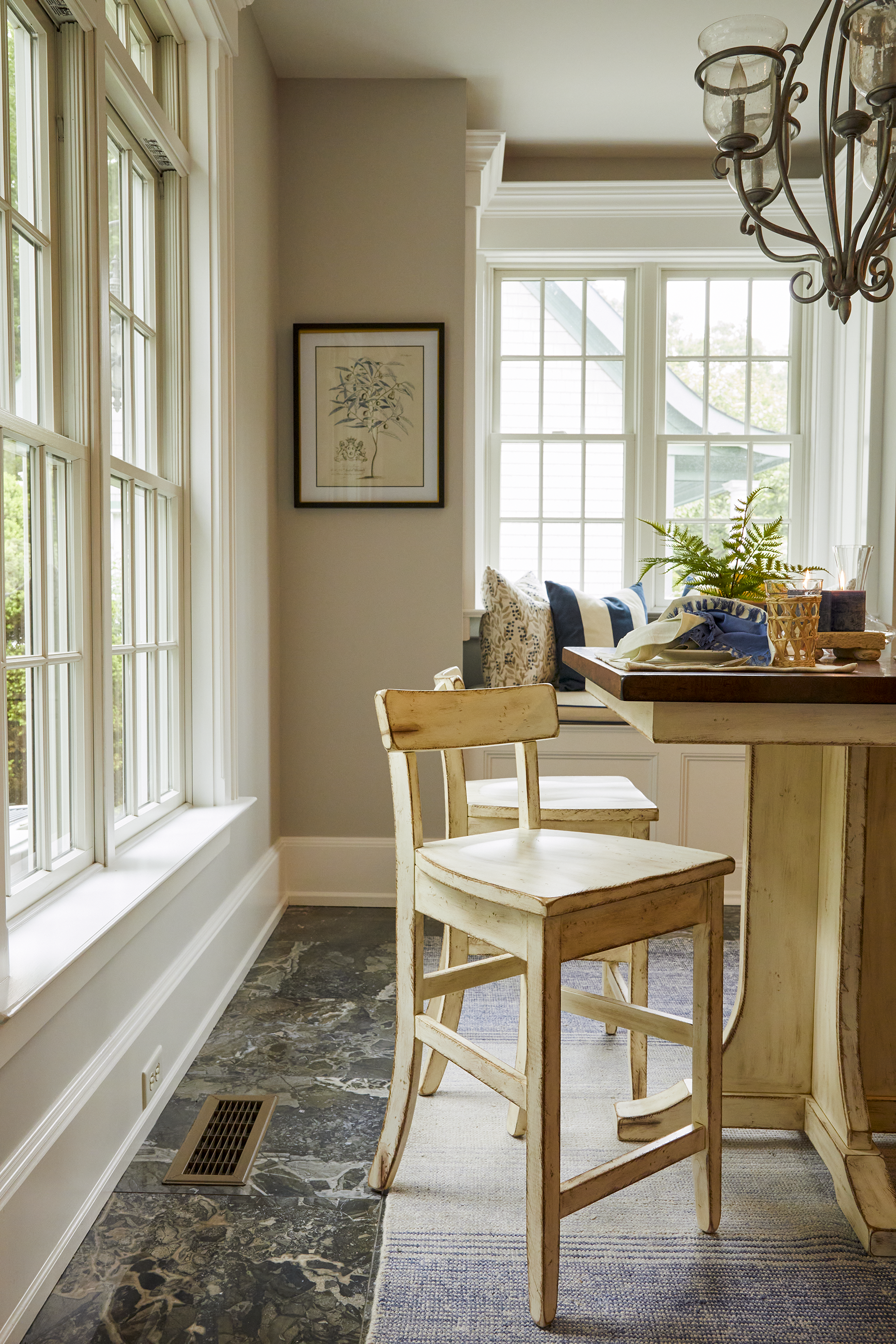 The color story naturally translated into the dining room, where family gathers regularly. Senior Designer Jackie O'Neil wanted to make it elegant, yet comfortable.