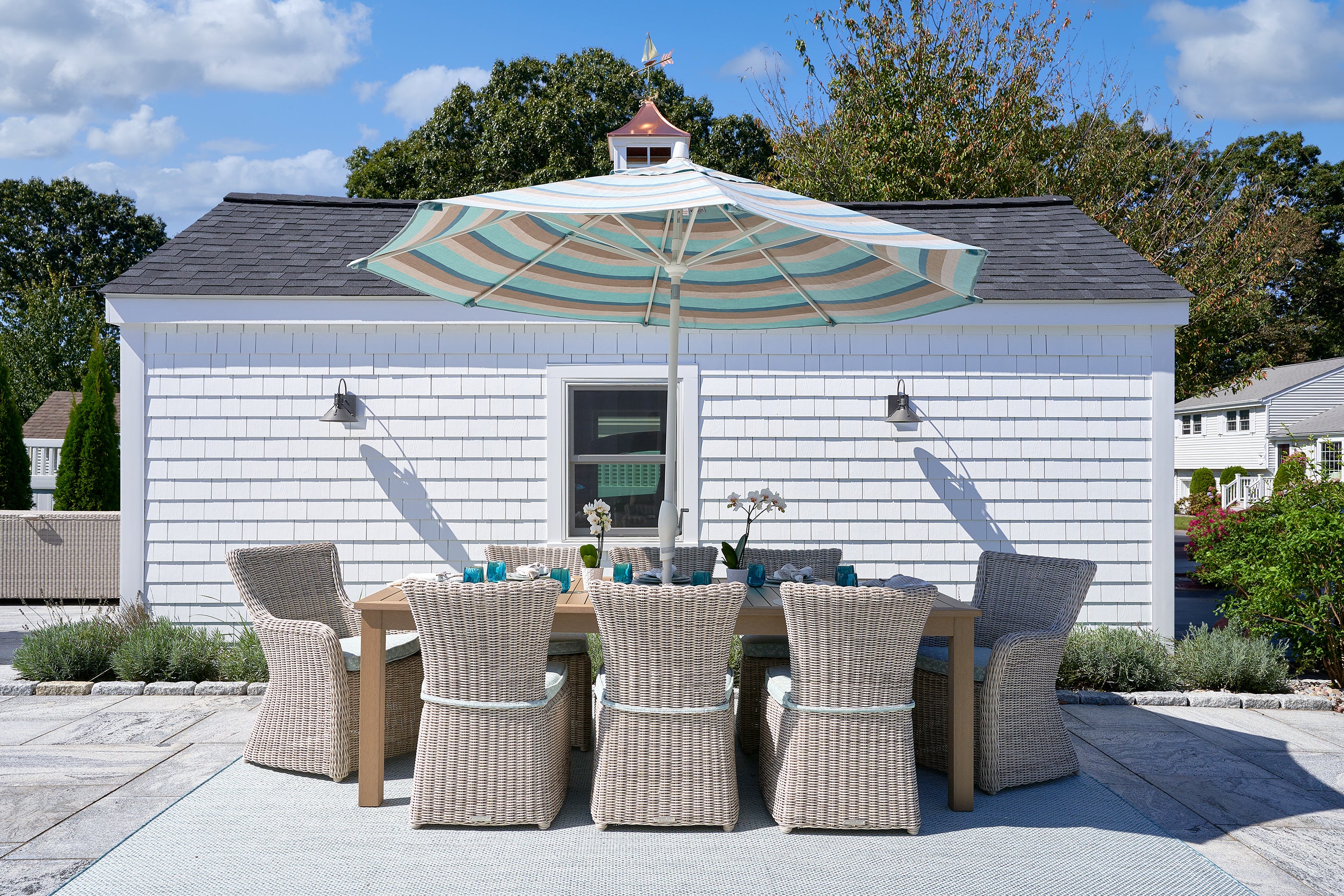 Just like a home's interior, the outdoor living spaces need to be carefully planned based on how you intend to utilize each area. This patio was divided into three clear areas - fire pit, dining area and lounge.