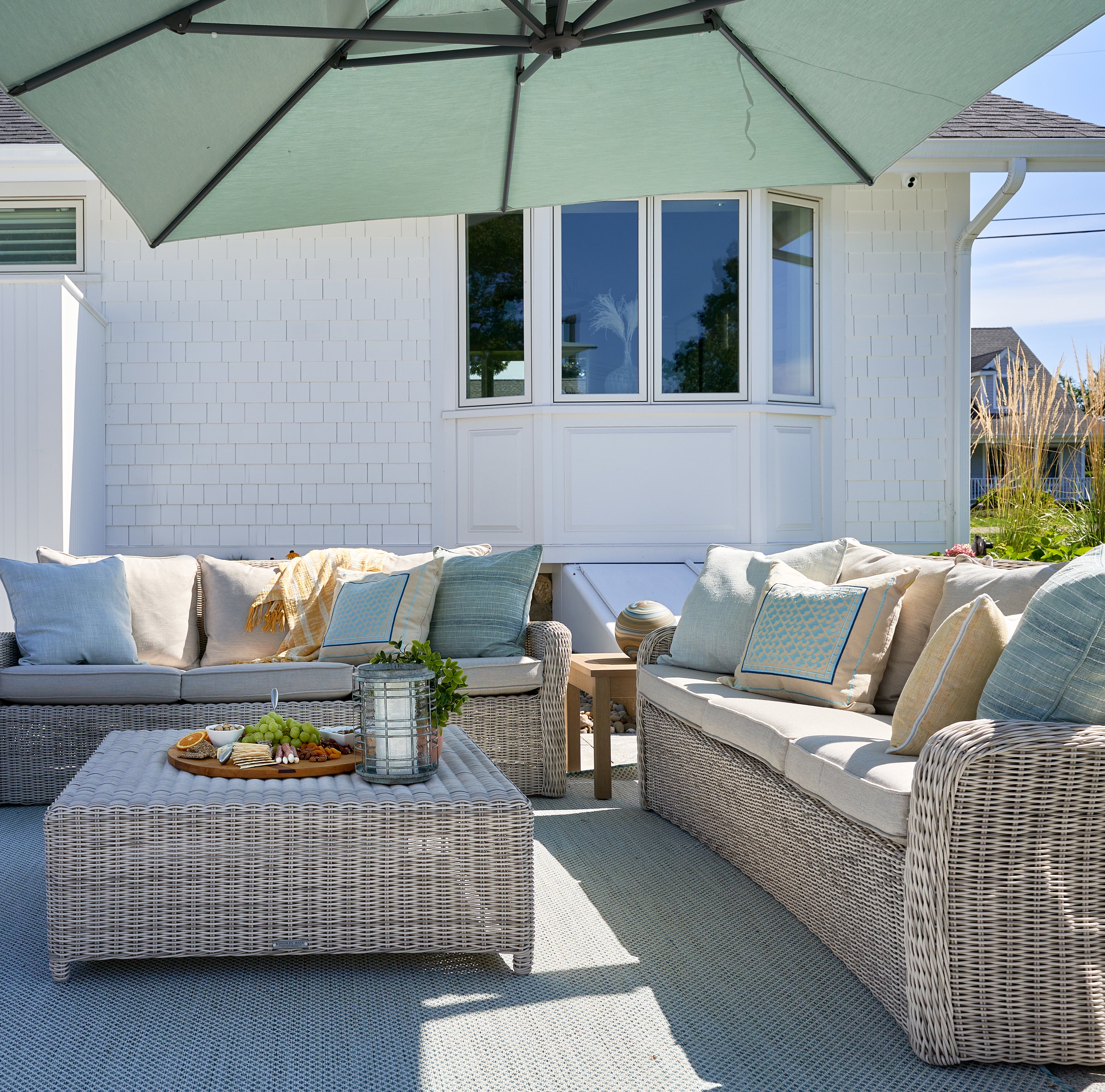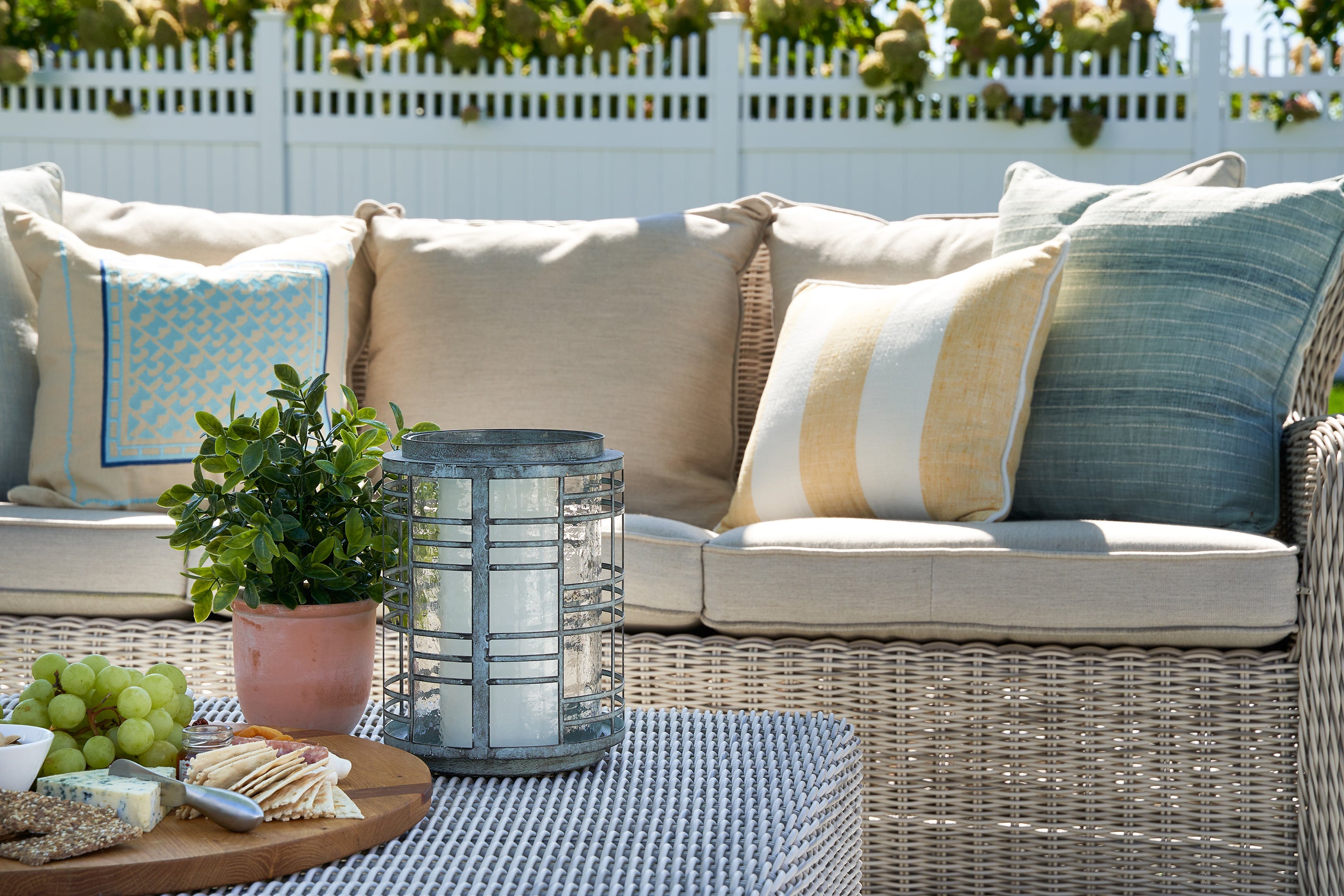Mildew and fade resistant performance fabric allows cushions to stay out all summer long without having to worry about wear and tear.