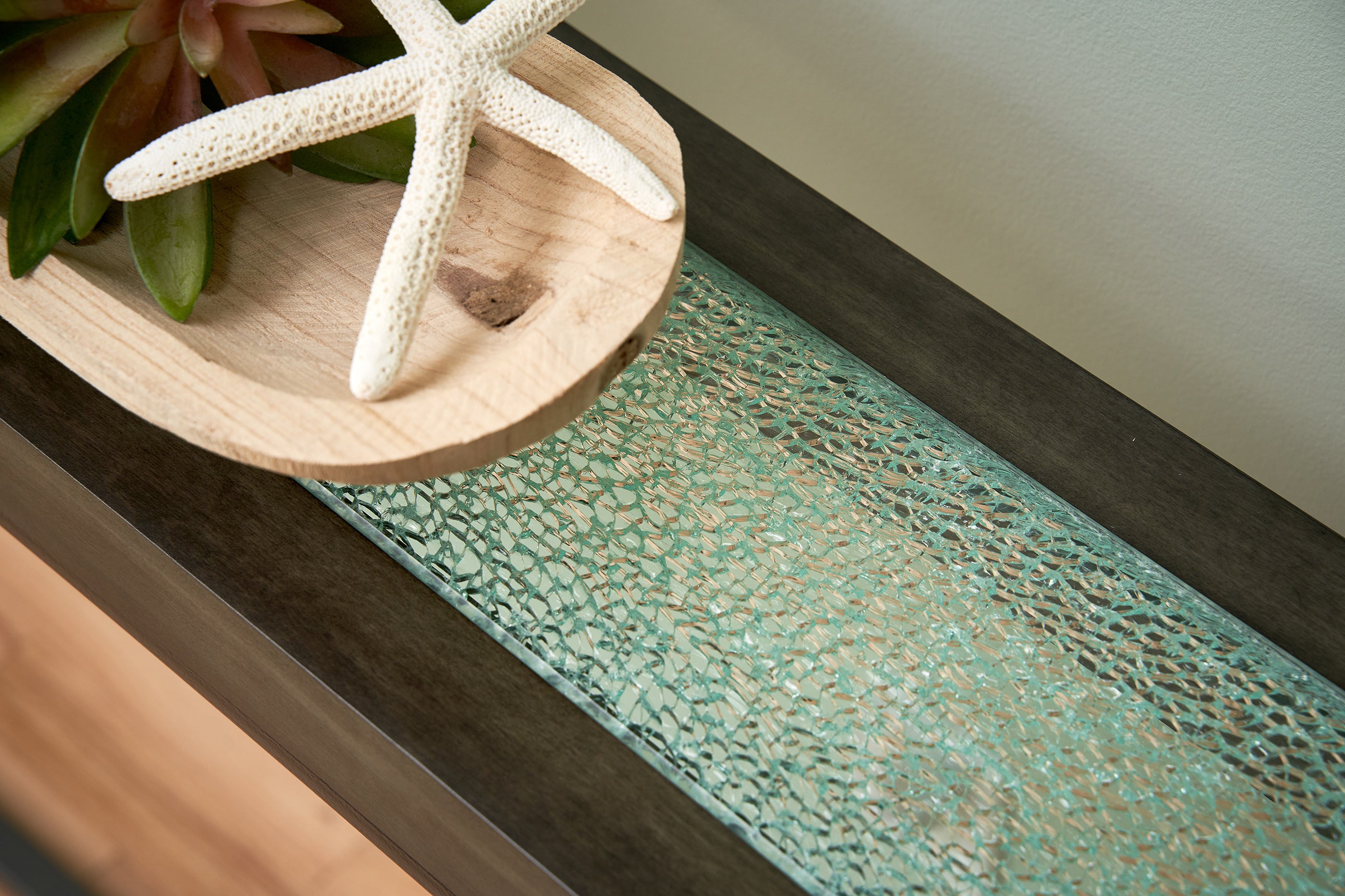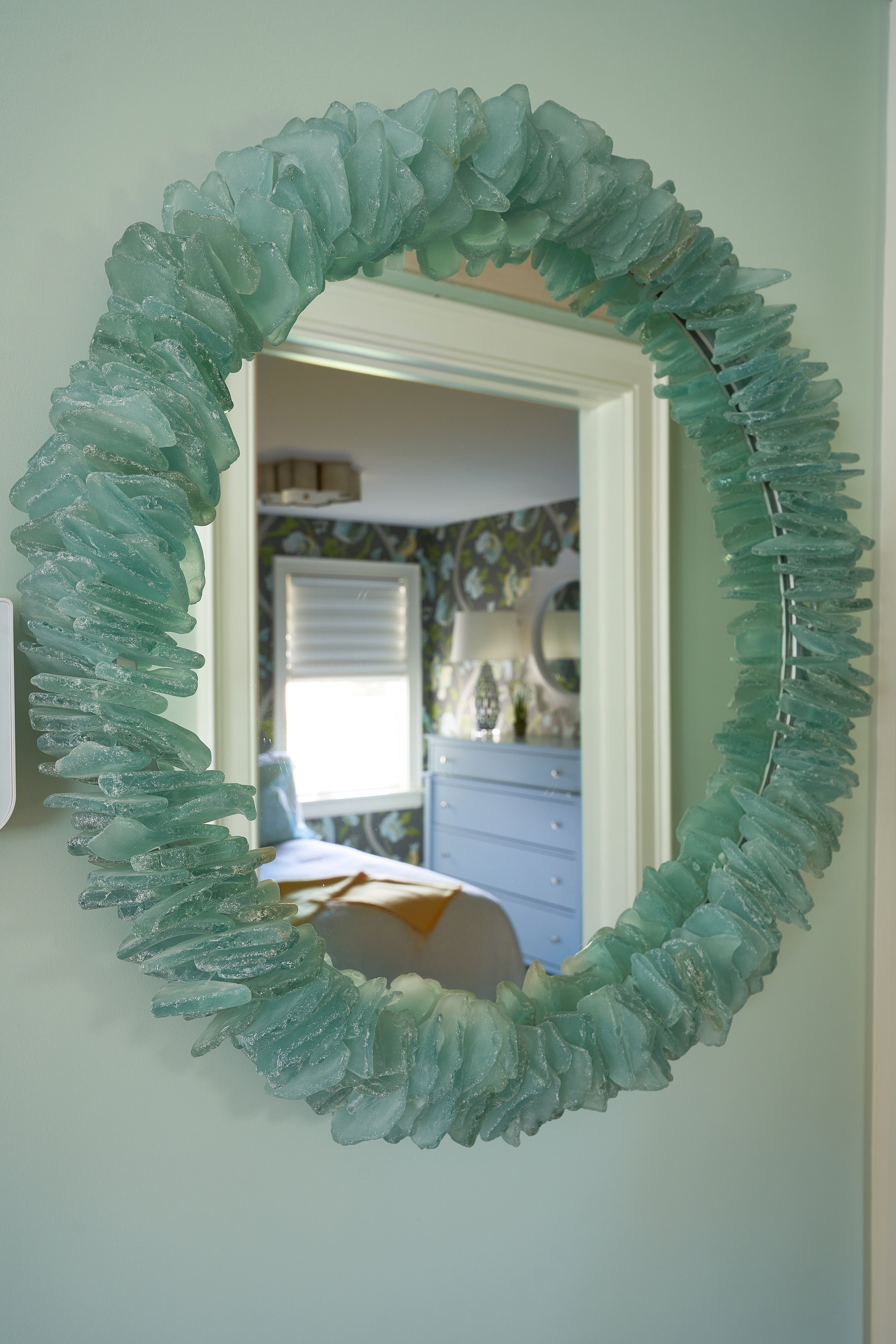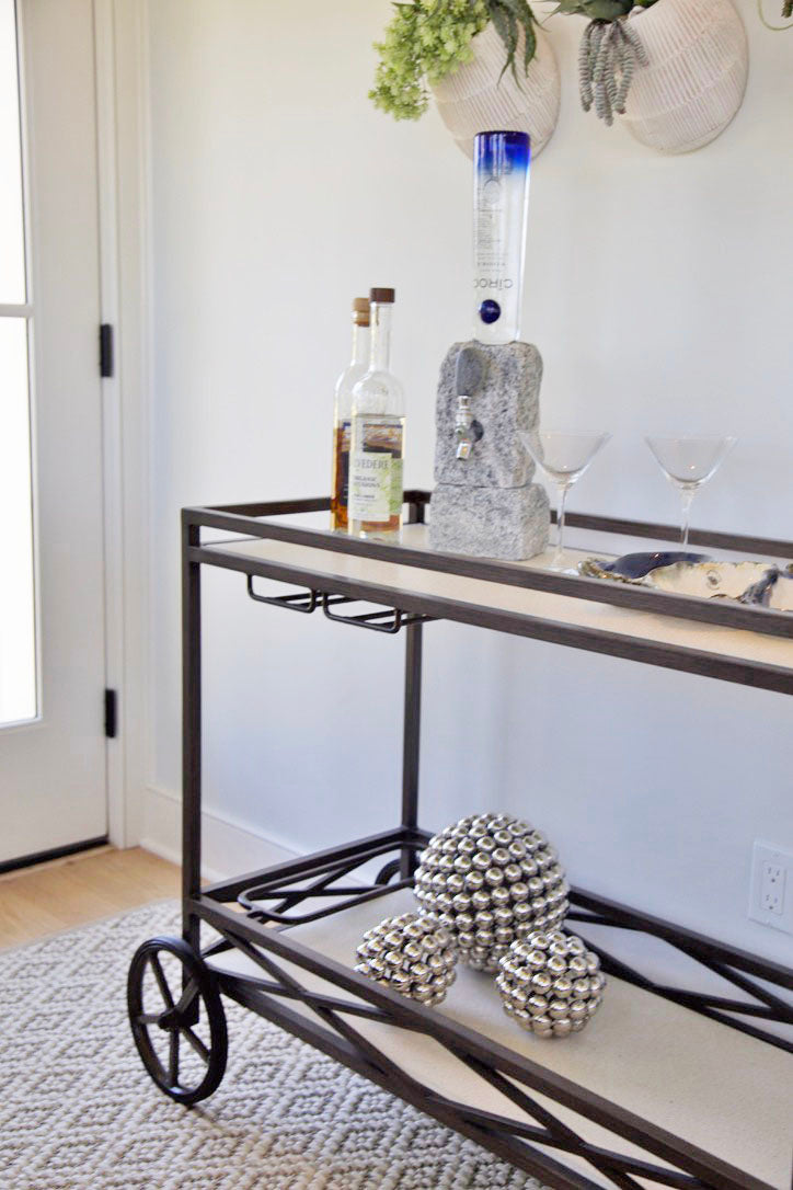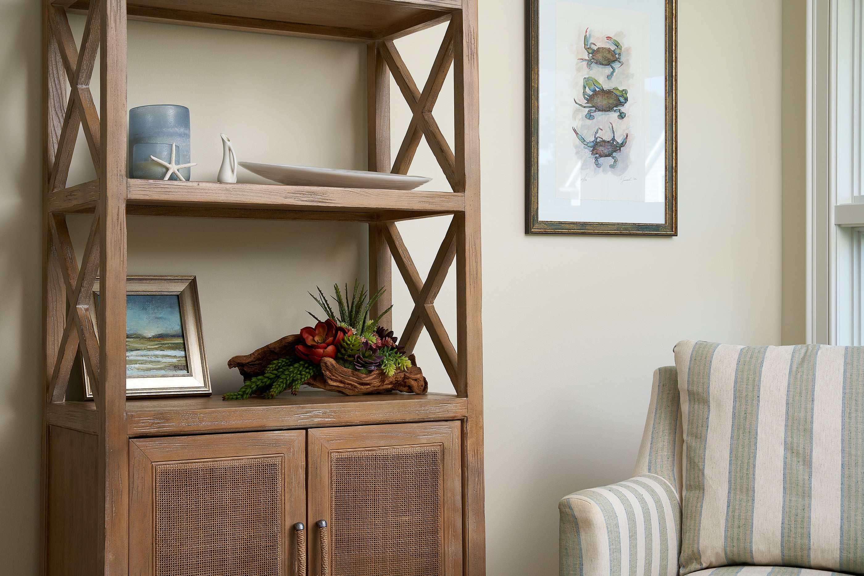 Inspired by the coastal vibe set off by the blue quartz kitchen countertop, Senior Designer Molly Dodd wanted to create cozy, yet inviting spaces with touches of the sea sprinkled throughout.