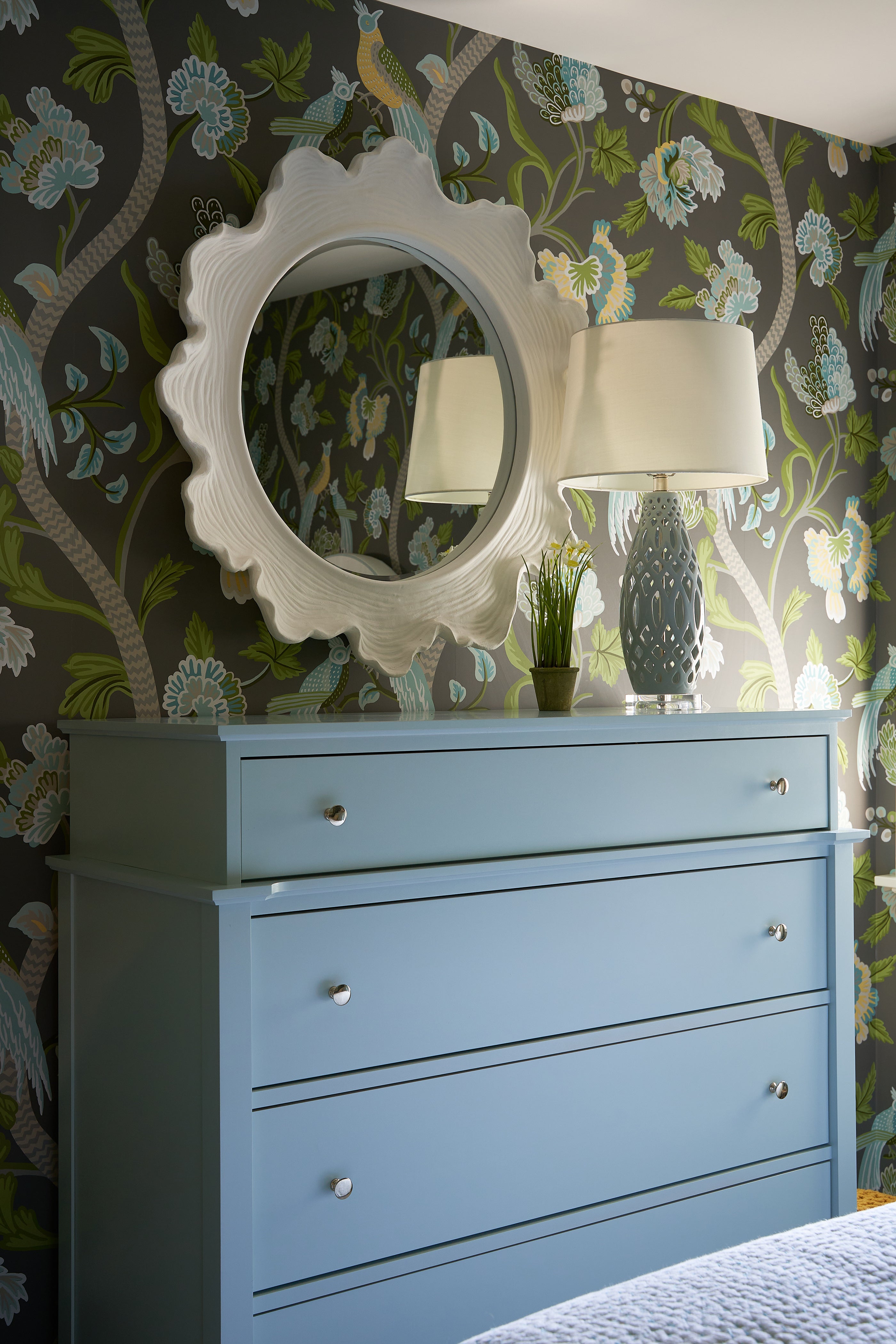 "The inspiration for this room was this amazing wallpaper selection. It was a fantastic starting point from which the rest of the design came together."
