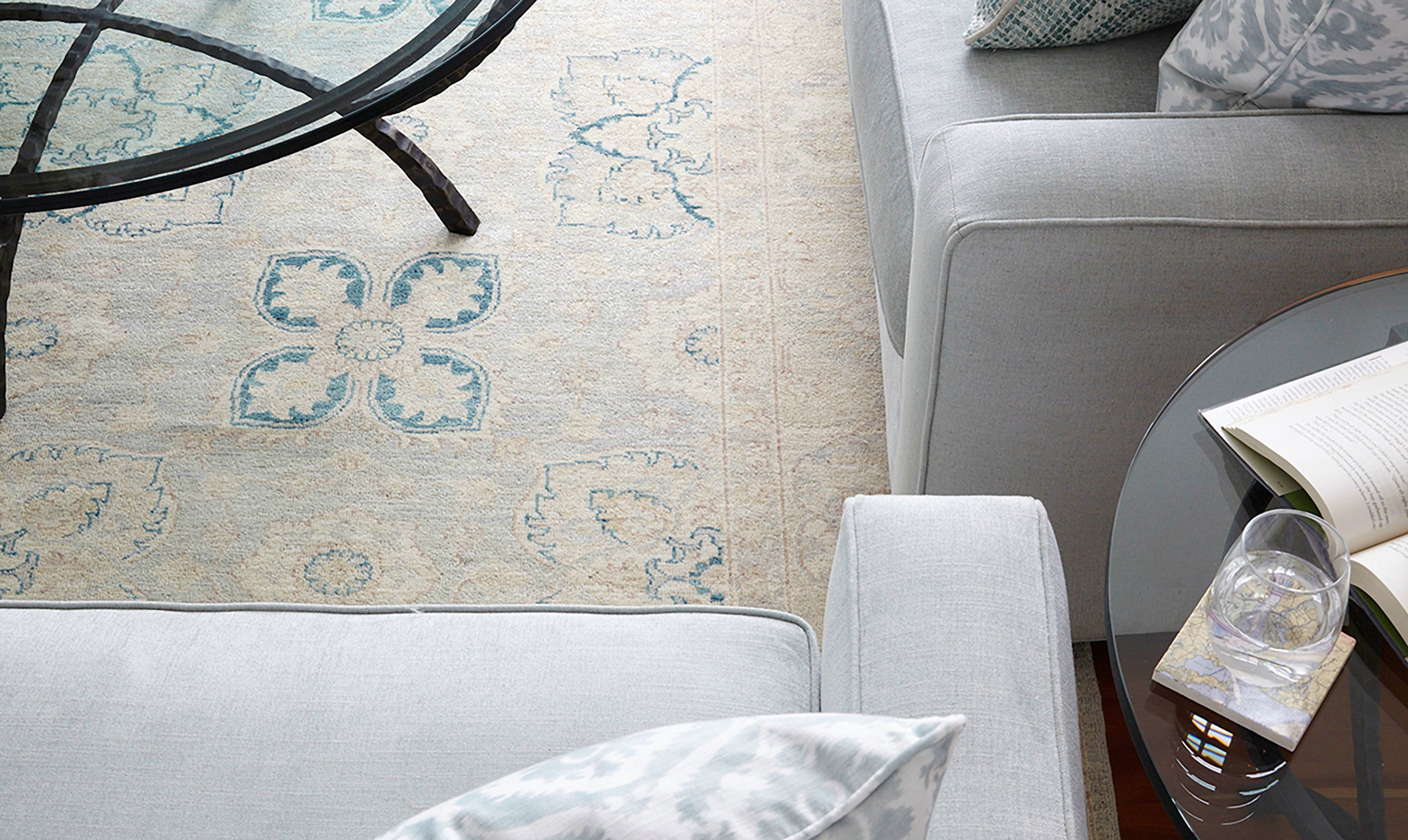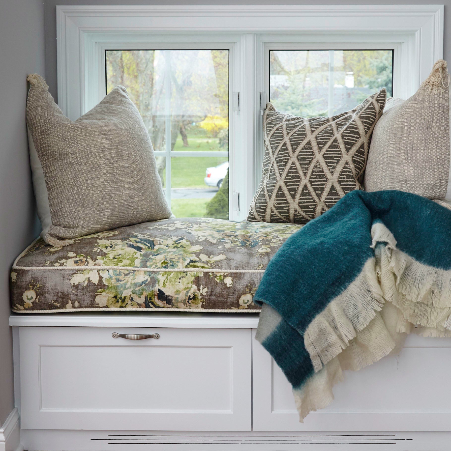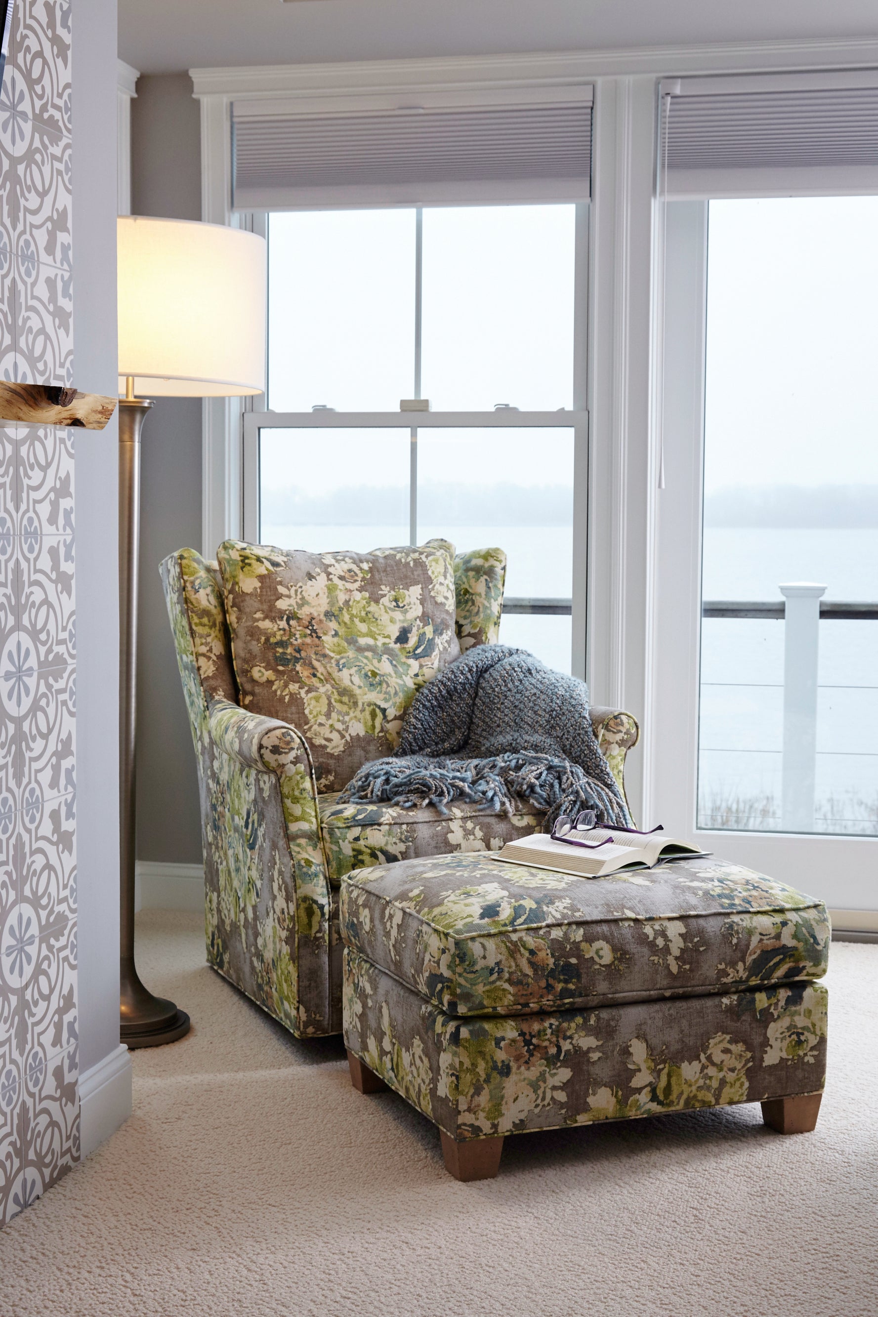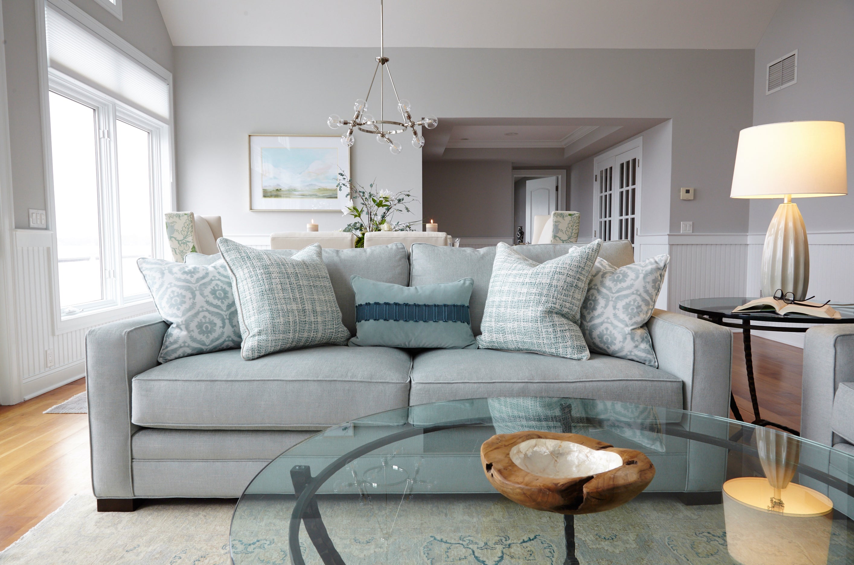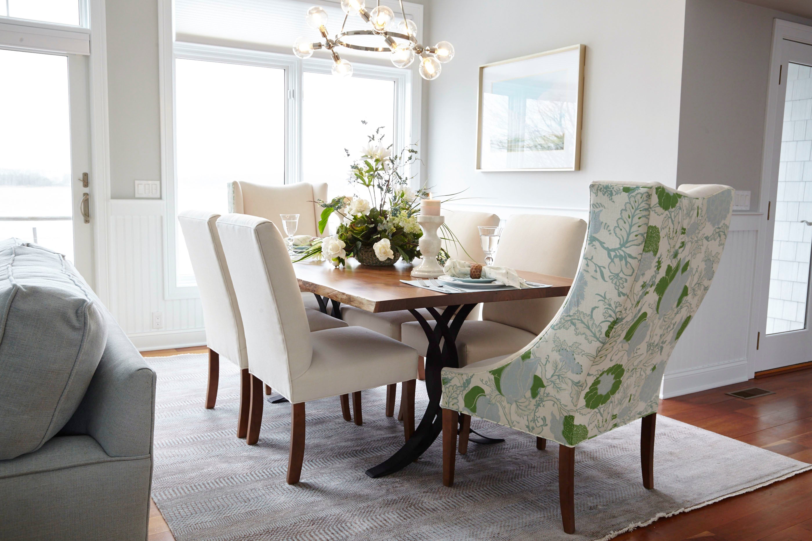 Jackie's favorite spot is the living/dining room. It's inviting, cozy and relaxing as the colors are calming and draw you in. This particular space overlooks the water which often reflects similar tones to the fabrics chosen in the design especially at early dusk.