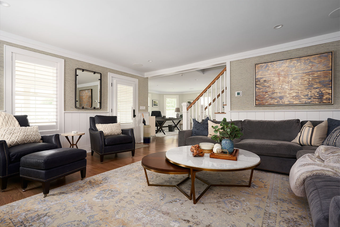 Each room in the home has a very cozy, welcoming feel - casual yet elevated with a touch of masculinity. Jackie attributes the calming feel to a neutralized color story. Each space flows elegantly and seamlessly into the next.