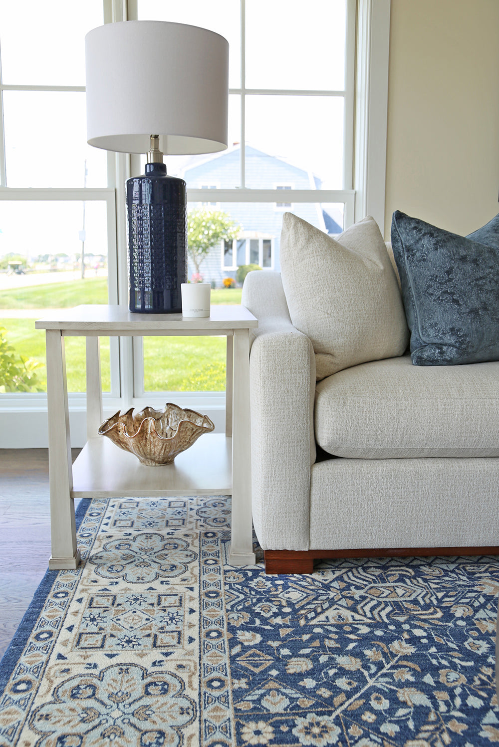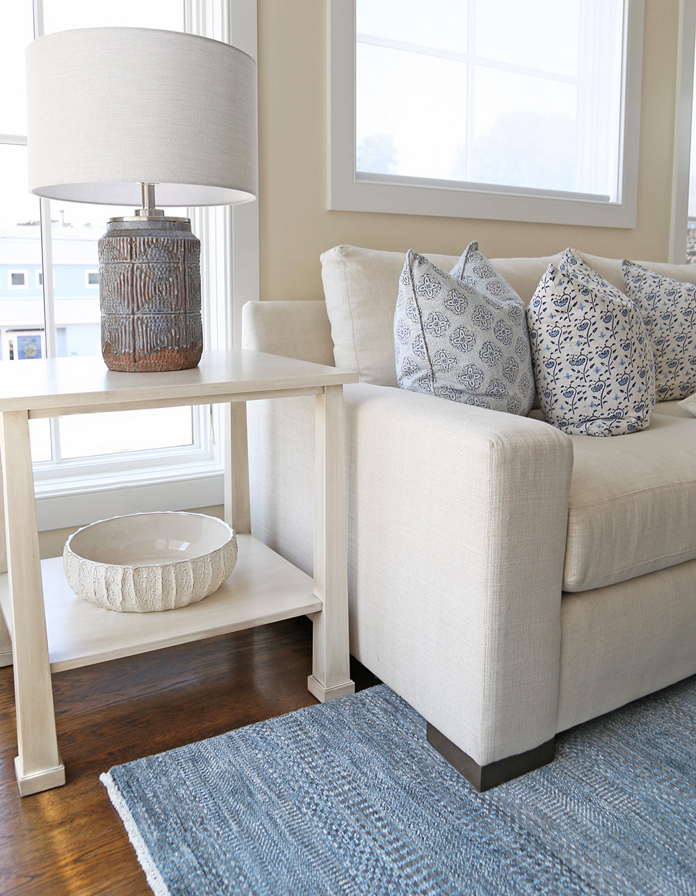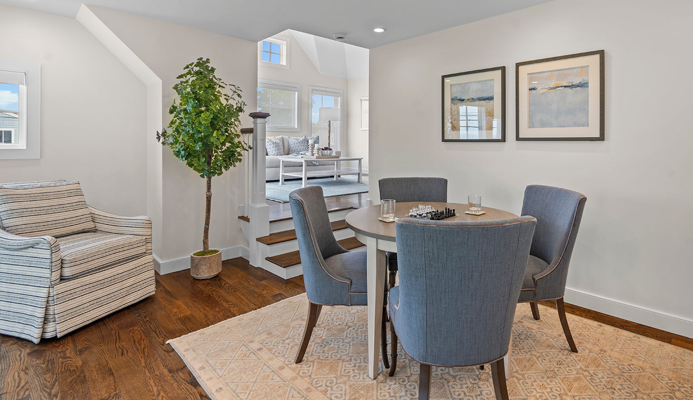 The coastal vibe of the home called for Kensington Chairs with an exquisite seafoam performance fabric seat cushion.