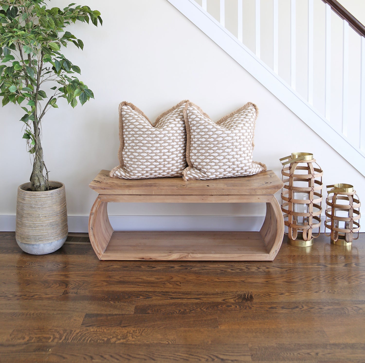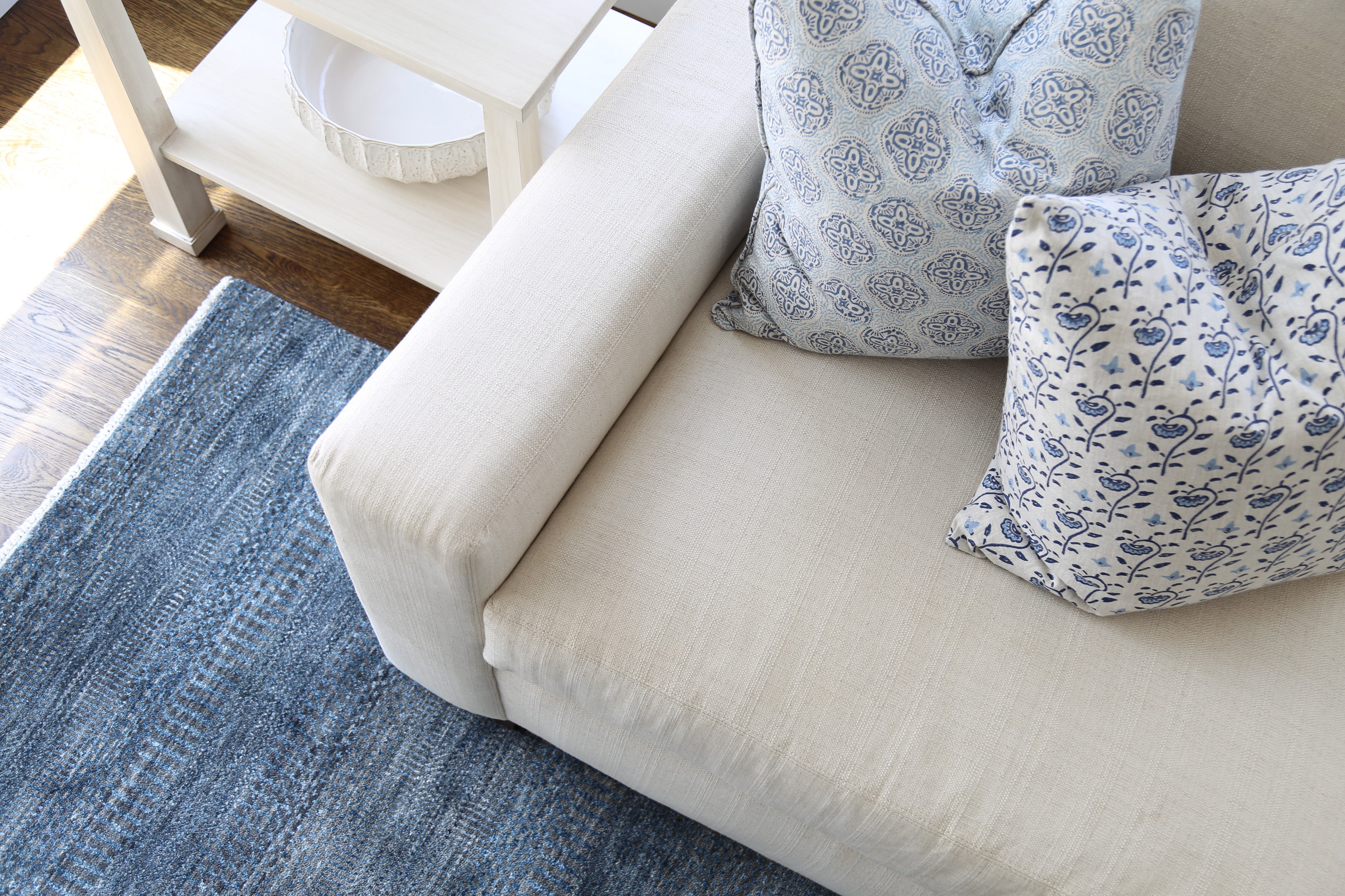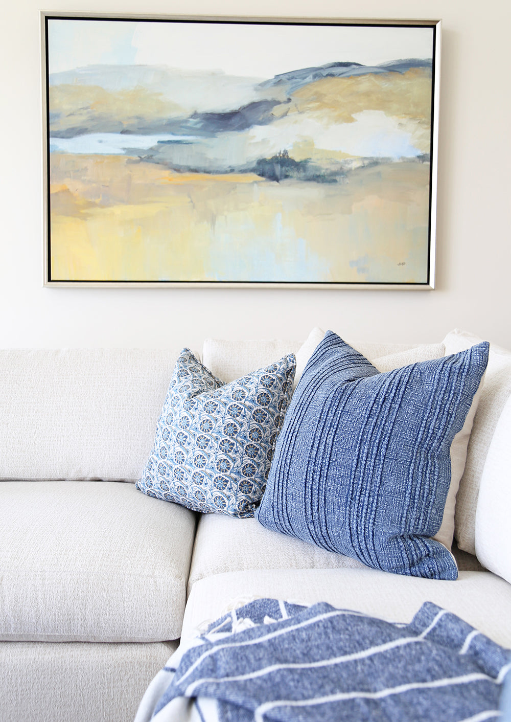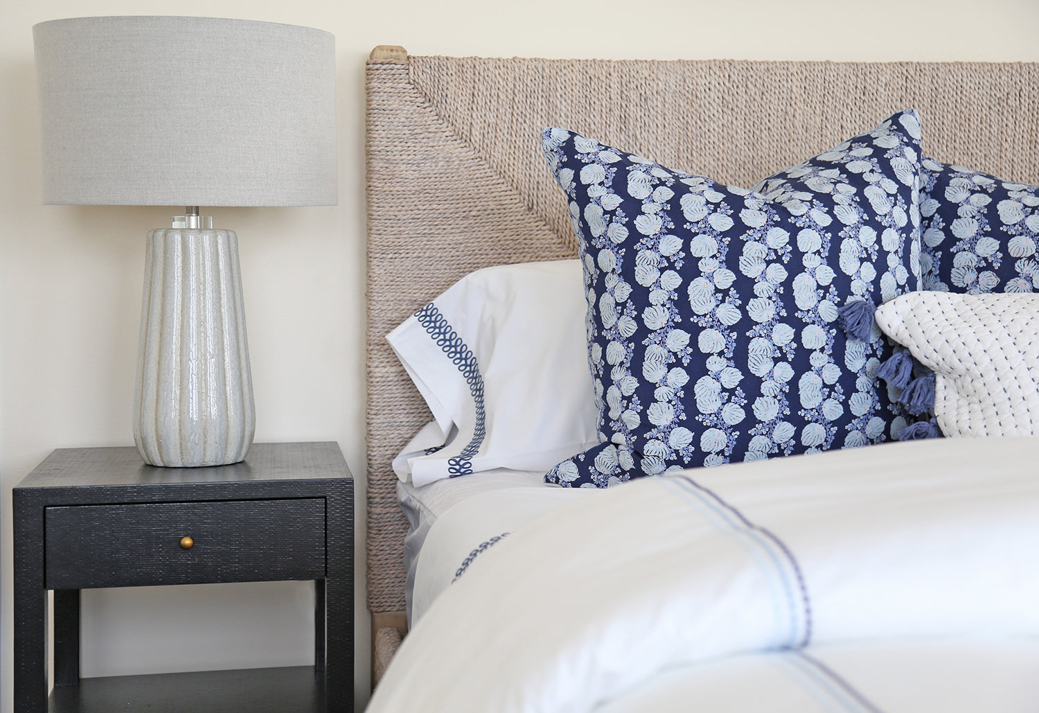 The coastal vibe of the home called for Kensington Chairs with an exquisite seafoam performance fabric seat cushion.
